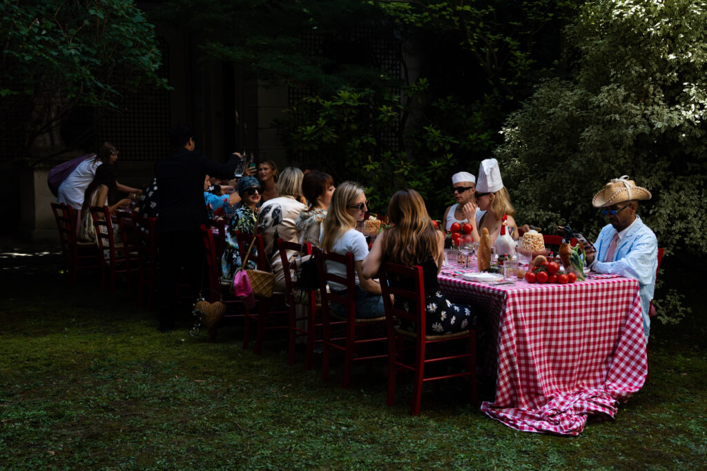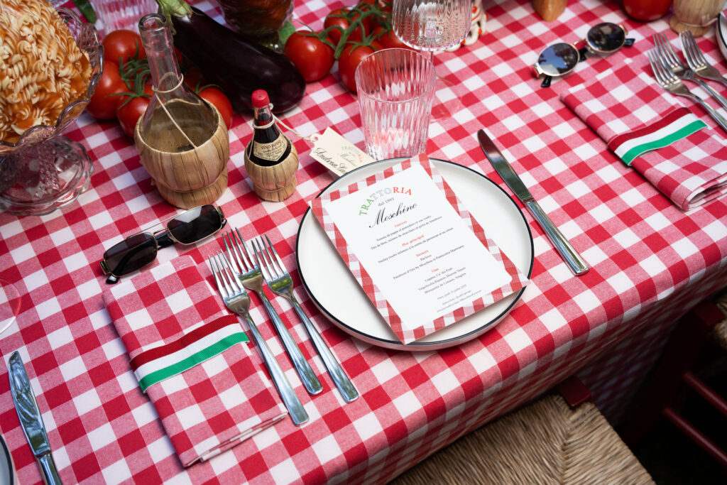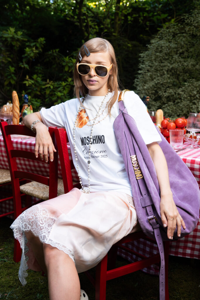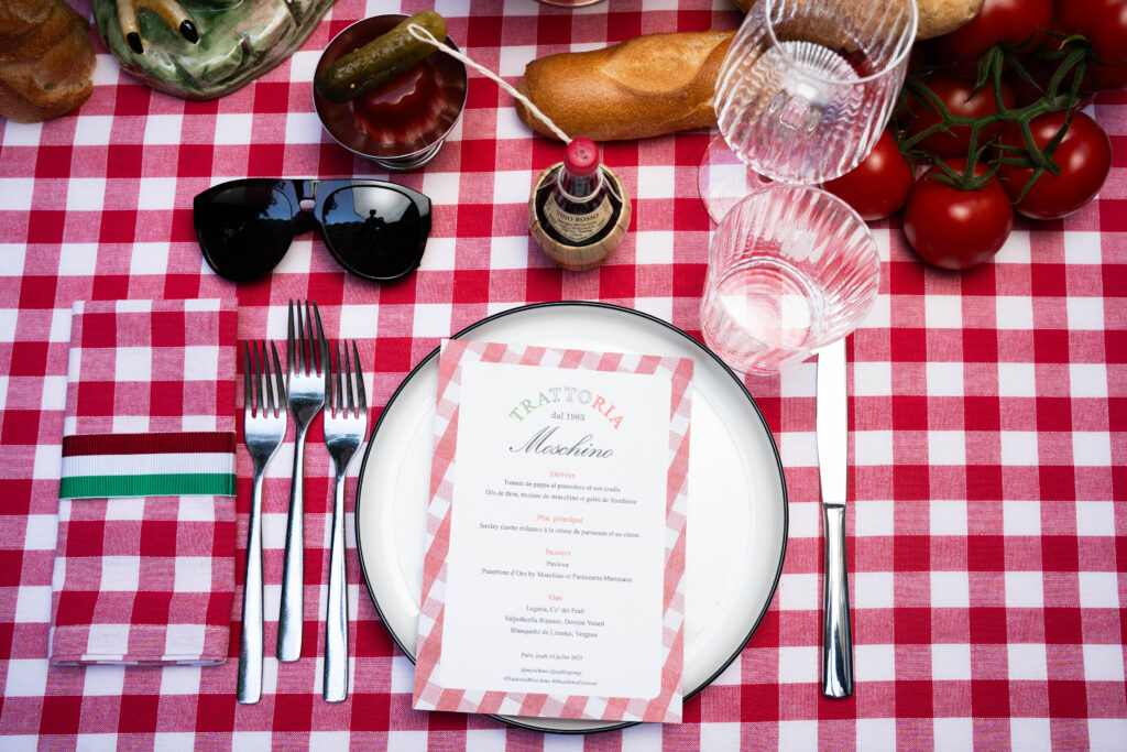 Entre pastas al dente et solaires oversize, Moschino a célébré l’été 2025 à sa manière : théâtrale, joyeuse, délicieusement décalée. Le jeudi 10 juillet, la maison italienne a réinventé les codes du dîner estival en ouvrant les portes de son hôtel particulier au 43 rue du Faubourg Saint-Honoré, rebaptisé pour l’occasion Trattoria Moschino.