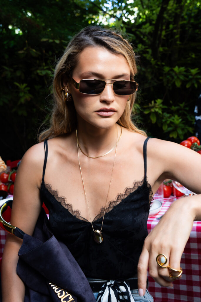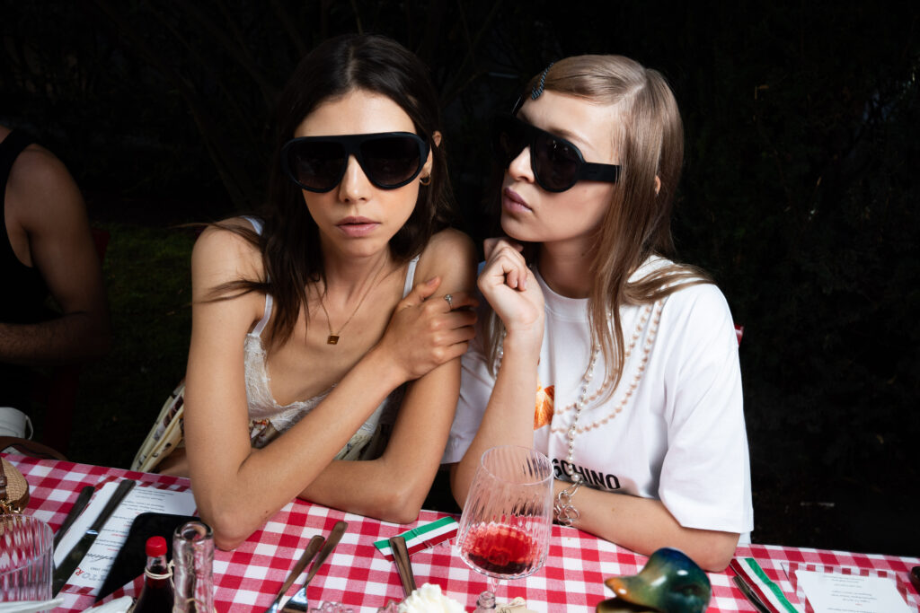 Les montures graphiques et solaires à l’extravagance assumée, portées par les convives, faisaient écho à l’ambiance vintage-chic de cette trattoria haute couture. Isabelle Chaput et Nelson Tiberghien (Young Emperors), Chloé Lecareux, Louise Ebel, Catherine Baba, María Bernad, Hanan Besovic (Ideservecouture) ou encore Sofia Achaval de Montaigu ont prêté leur silhouette à cette célébration solaire, entre verres fumés et tenues affirmées.