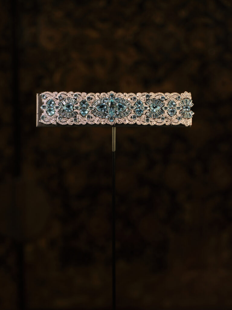 - L’Écho du Rêve – cabochons Sleeping Beauty de 208 ct structurés sur titane semi-flexible, vibrent comme une onde turquoise.
