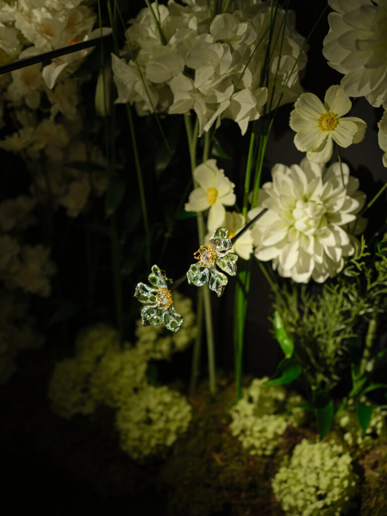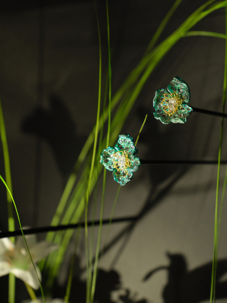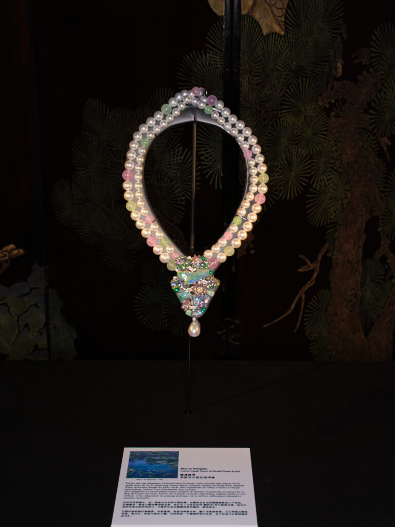 Lorsque l’on pénètre dans la rotonde du Musée Guimet, le murmure y est végétal : Jardin du Rêve, première grande exposition de Serendipity Jewelry, y fait éclore des parures qui semblent suspendues entre la quiétude d’un jardin chinois et les reflets mouvants des bassins de Monet .