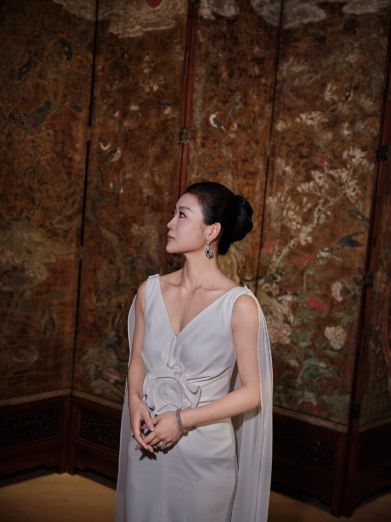 Chaque ensemble conjugue asymétrie chinoise et rigueur française, reflet du parcours biculturel de la fondatrice, gemmologue diplômée SSEF et installée place Vendôme depuis 2023 .