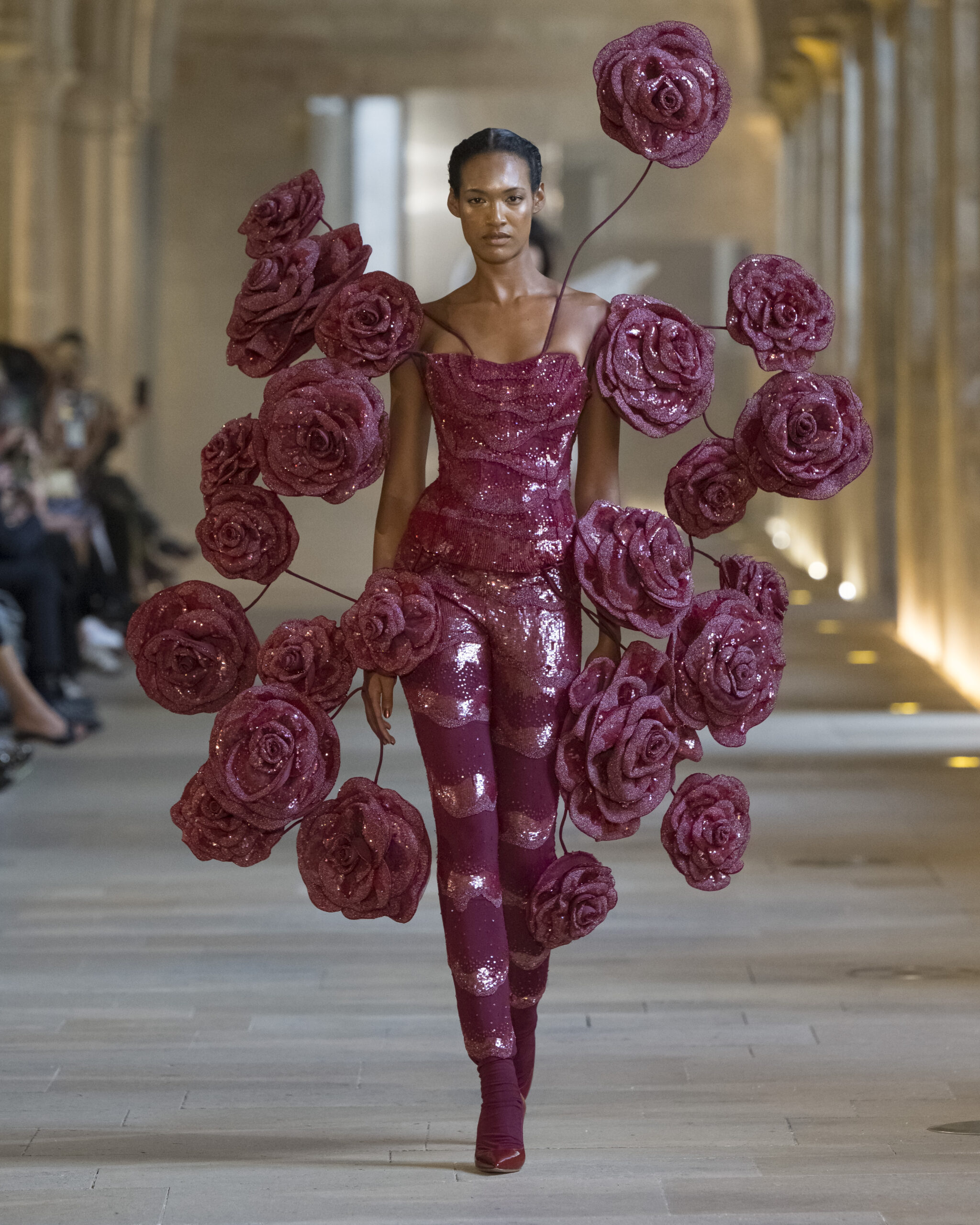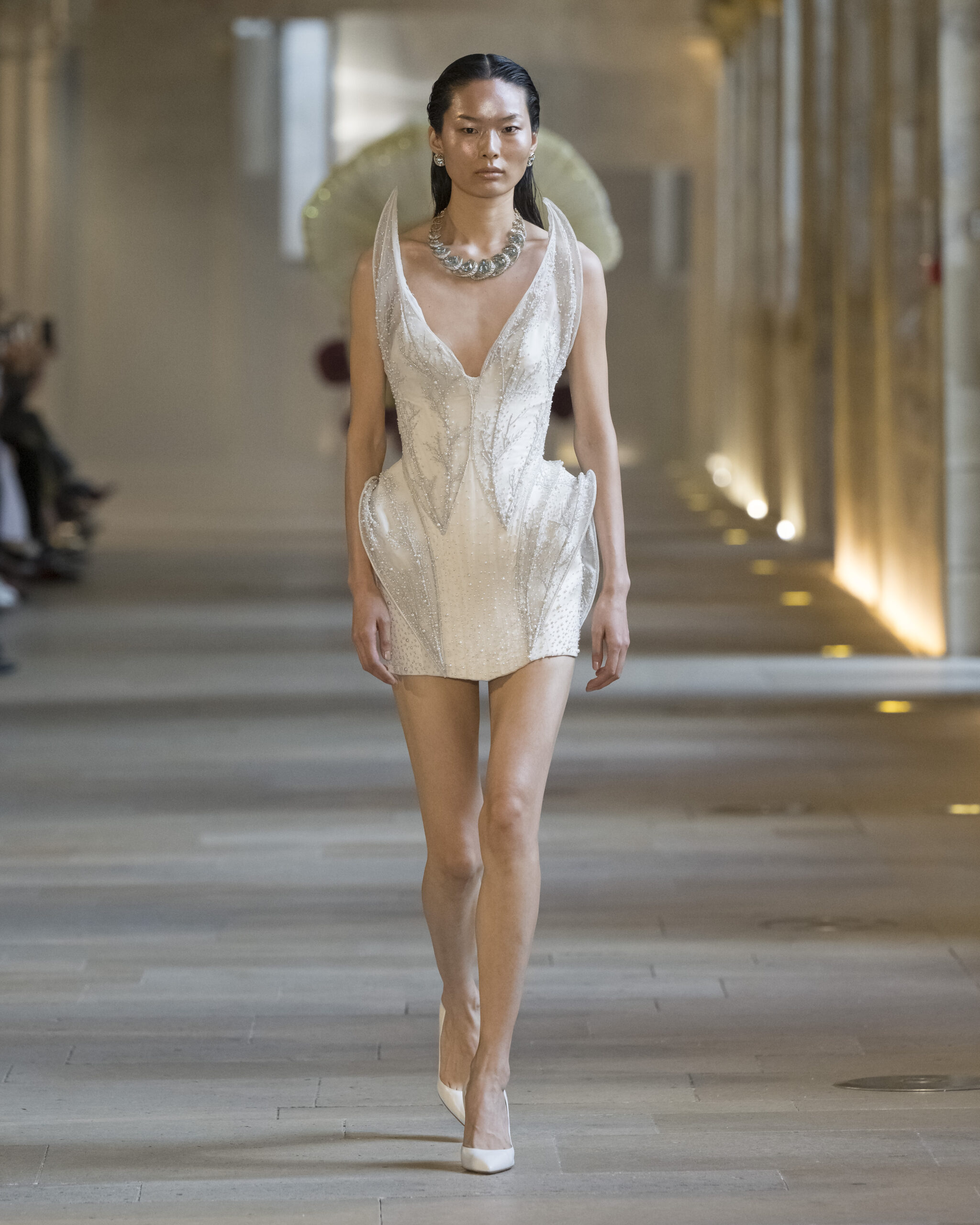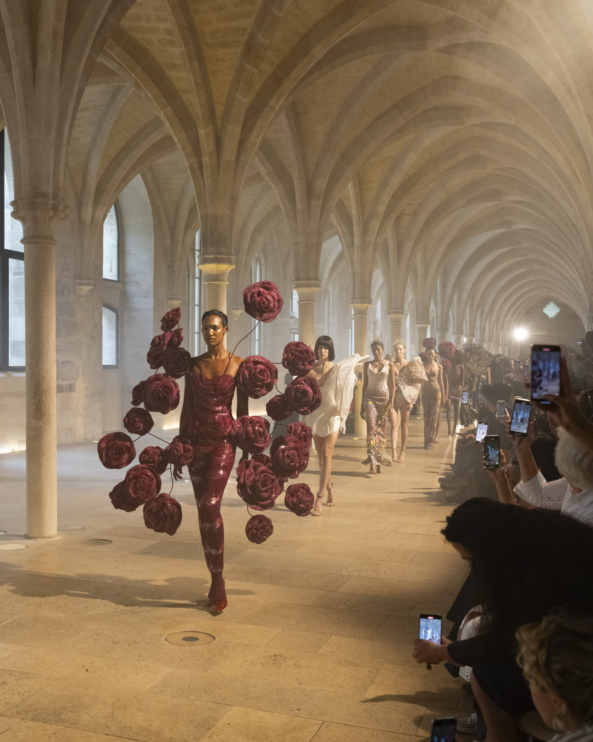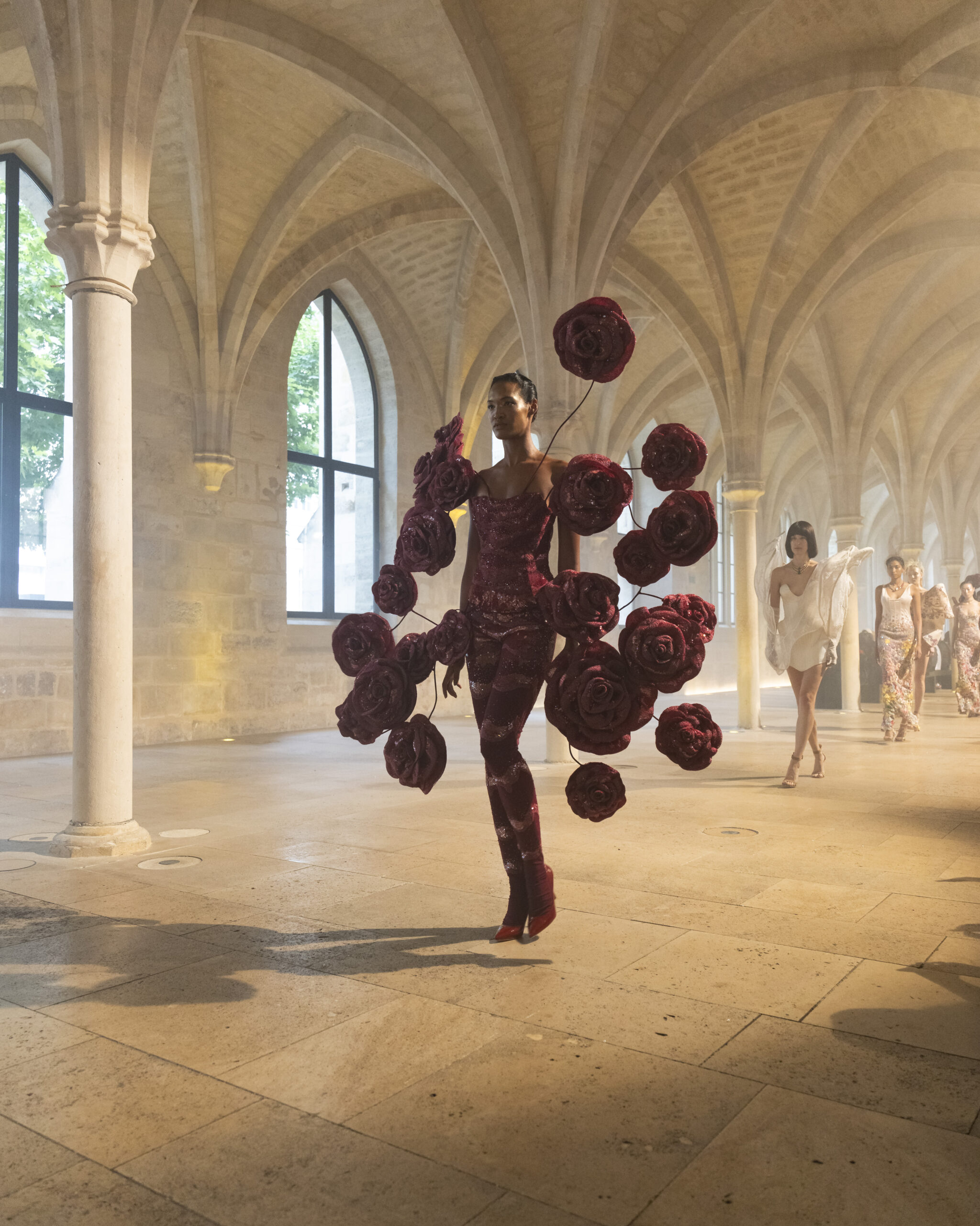 La collection « Becoming Love » atteint ainsi une double apogée : conceptuelle — décomposer l’affect jusqu’à sa dissolution — et artisanale, puisque chaque point, chaque soudure, chaque plume vient redire que la main, loin d’être suppléante, reste l’organe-cœur de la haute couture.