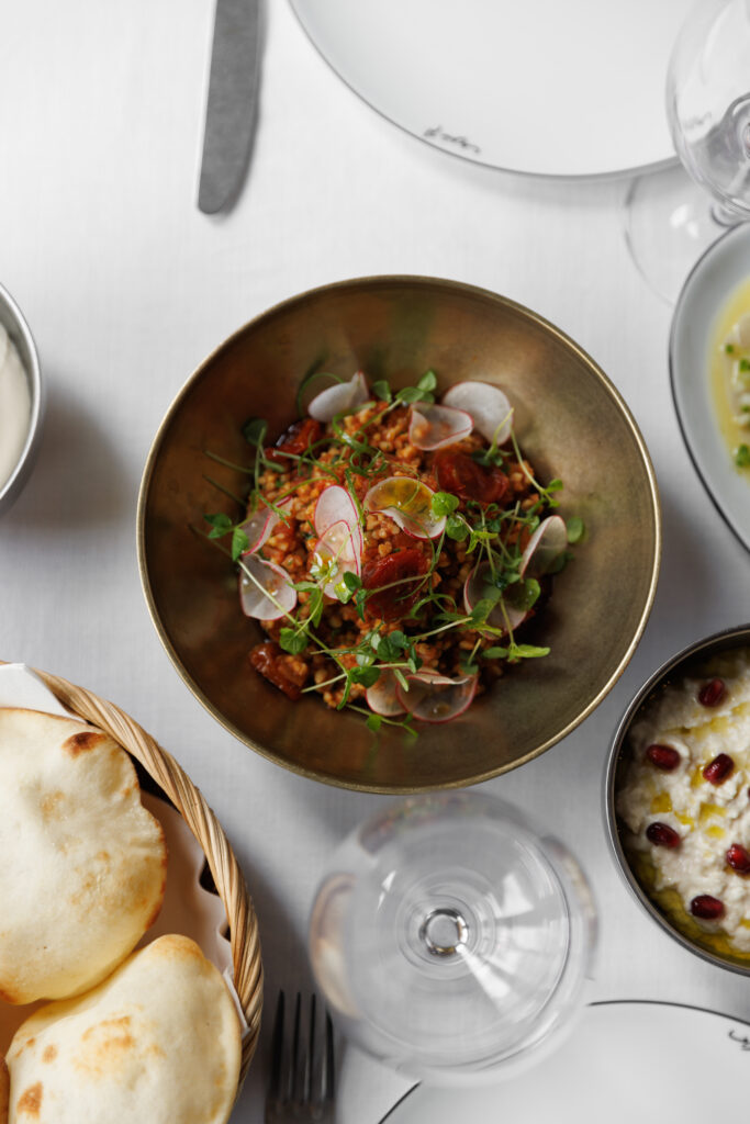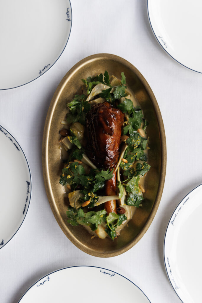 Avec ses 135 couverts, ses deux terrasses et un décor signé Samer Bou Rjeily, Em Sherif Café Paris joue sur les arches orientales, boiseries chaleureuses, carreaux colorés, miroirs patinés et clins d’œil aux brasseries françaises. Le bar en marbre Bardiglio devient le haut lieu des mocktails aux fruits du Levant, des spiritueux d’auteur, et des araks à partager.