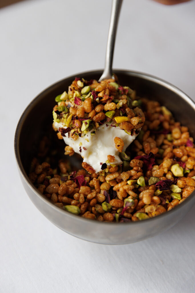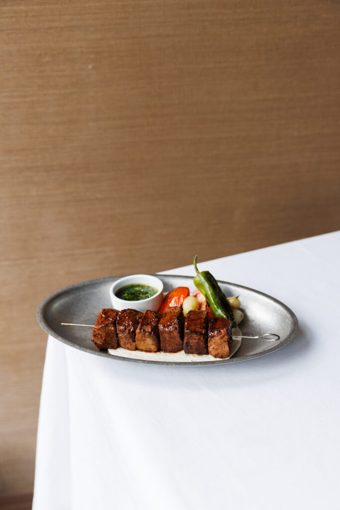 La carte est une déclaration d’amour au Liban, un ballet de mezzes colorés – labneh, tabboule, houmous, falafels, man’ouchés dorés minute – et de plats parfumés de za’atar, sumac, citron et ail, allant du shawarma de wagyu aux brochettes d’agneau, jusqu’au poulet mariné. Côté douceurs, riz au lait, ashta à la barbe à papa, mouhalabieh et baklava pistache ponctuent le repas d’un souffle sucré inoubliable.