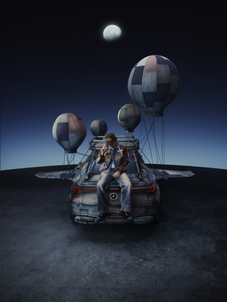 Chez Mercedes-Benz, l’innovation ne s’arrête pas au design automobile. Pour la saison Printemps/Été 2026, la marque allemande pousse plus loin sa stratégie culturelle avec son programme “Class of Creators” en confiant les clés de son tout nouveau CLA à Colm Dillane, alias KidSuper, à l’occasion de la Paris Fashion Week. Résultat : une sculpture roulante, survoltée, où la carrosserie devient cape et les phares des yeux étoilés.