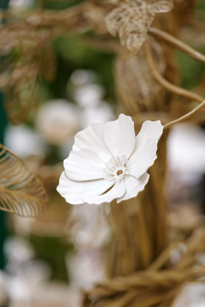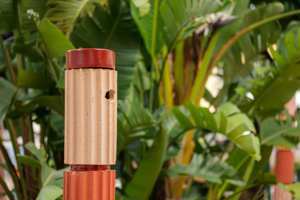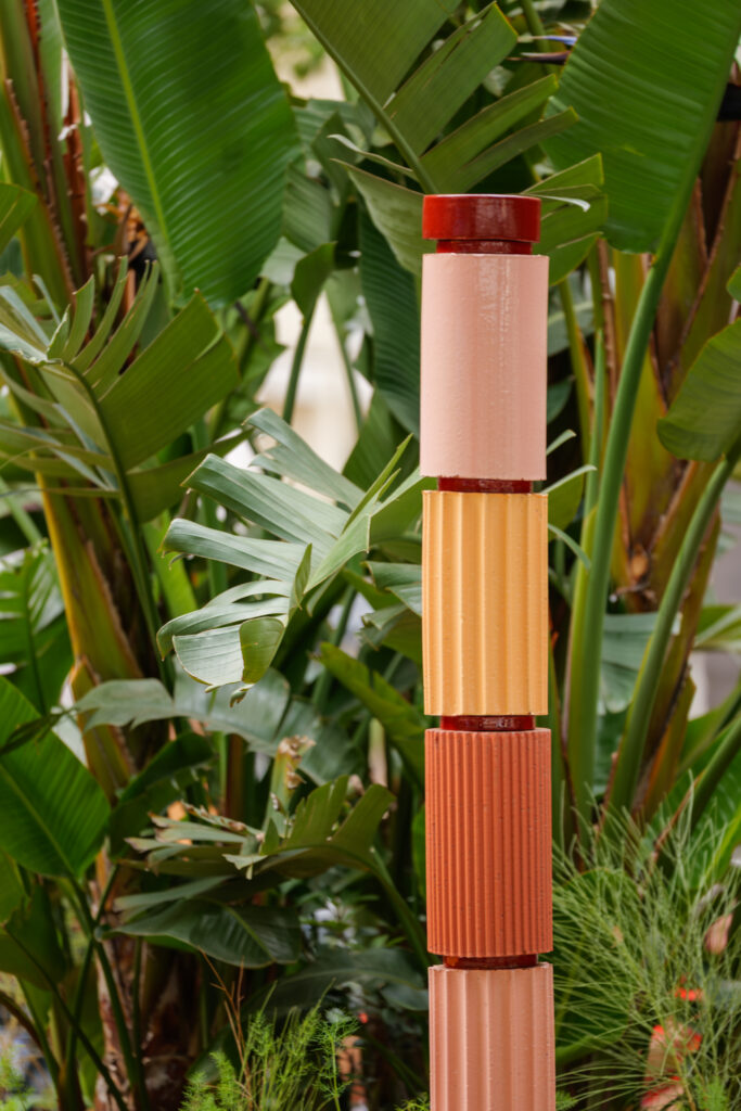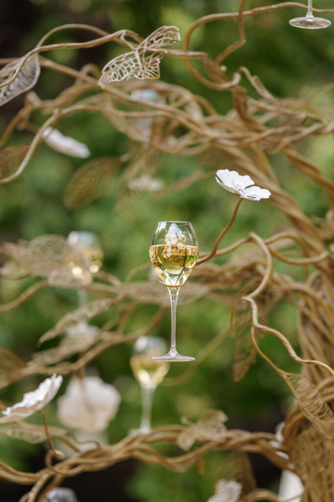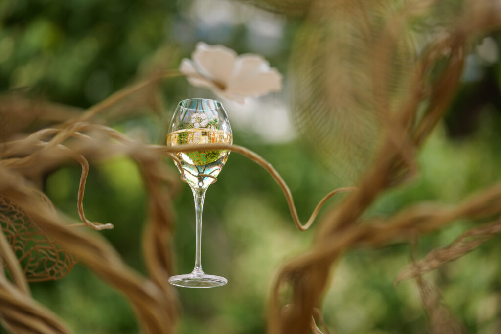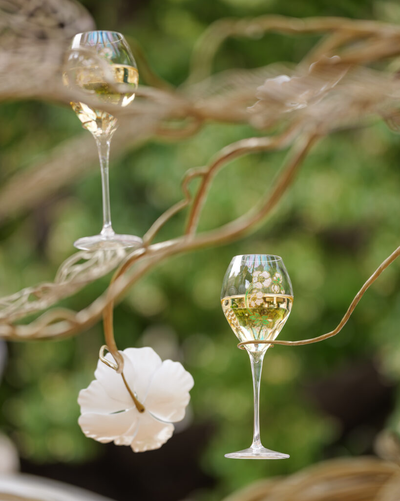 Sous l’ombre d’un kiosque stylisé, les visiteurs découvrent une expérience immersive et multisensorielle. À commencer par l’Arbre à Flûtes du designer Tord Boontje, installation poétique où les coupes de champagne suspendues se cueillent comme des fruits rares. Plus loin, l’œuvre Oecanthus de David Monacchi fait entendre les sons enregistrés au cœur du vignoble, révélant la richesse acoustique de sa biodiversité. Enfin, une reproduction de l’Ilot de Biodiversité conçu par Formafantasma complète cette promenade en hommage au vivant.