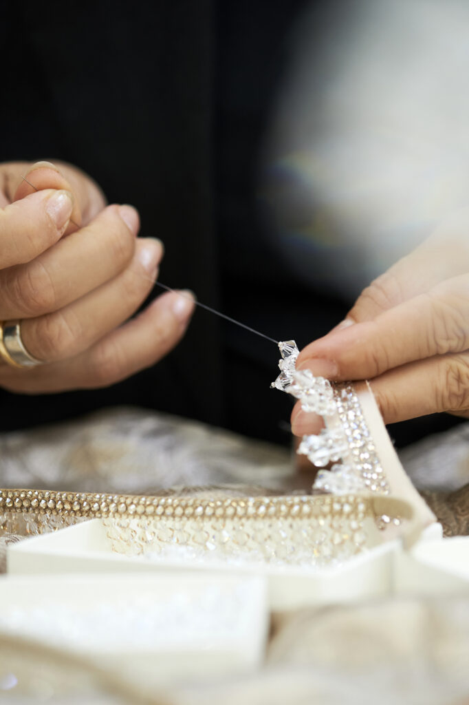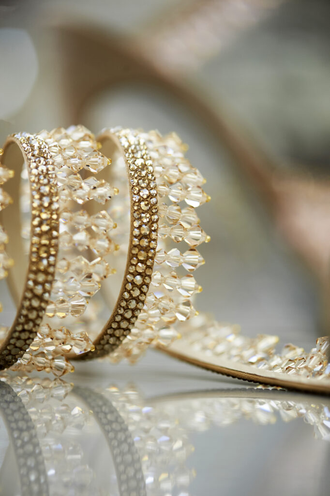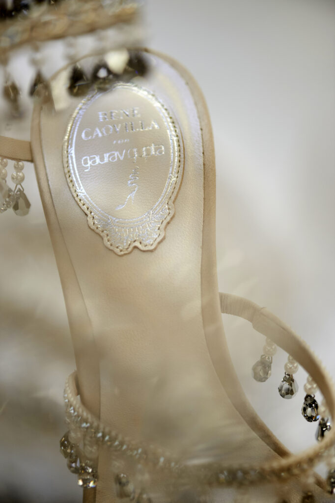 Au cœur de cette synergie créative, sept paires de souliers exclusives ont été imaginées, façonnées avec des textiles indiens authentiques, des broderies traditionnelles minutieuses, et des ornements de cristal et pendentifs délicats. Cette capsule reflète l’héritage d’excellence de Rene Caovilla, marié à la vision futuriste et sculpturale de Gupta, formé à Central Saint Martins et devenu l’un des piliers de la couture contemporaine indienne.