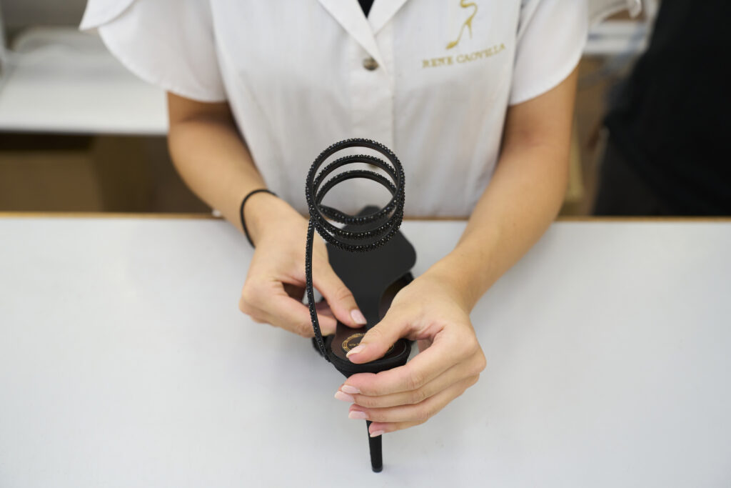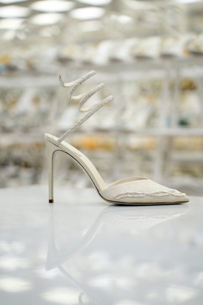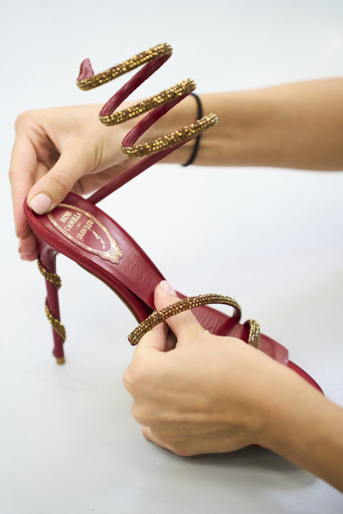 La collection sera disponible dès janvier 2026, dans les boutiques exclusives Rene Caovilla et Gaurav Gupta ainsi que sur renecaovilla.com.
