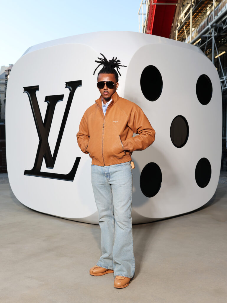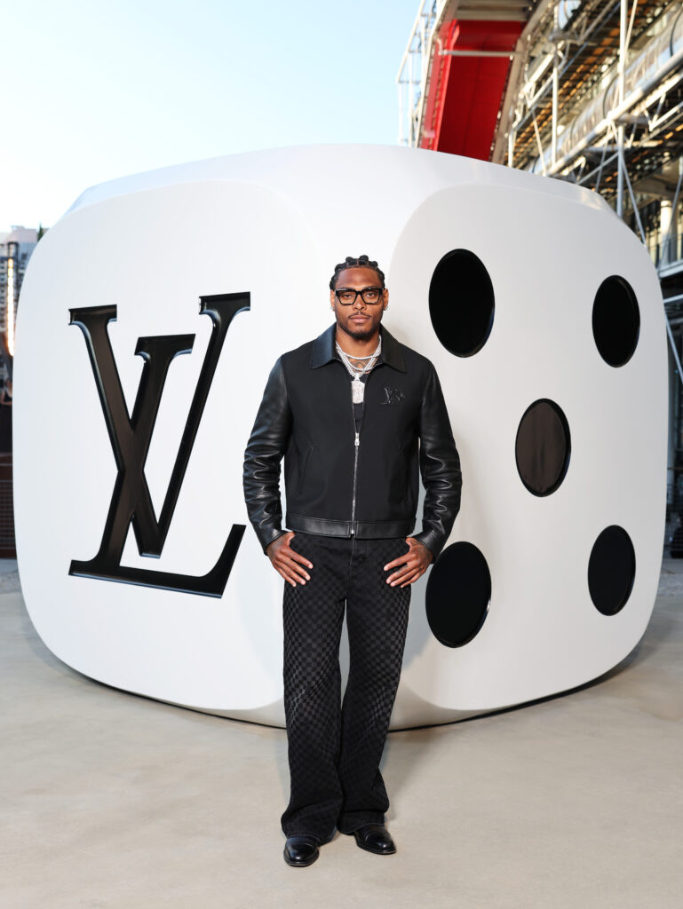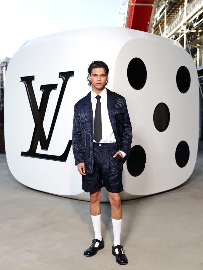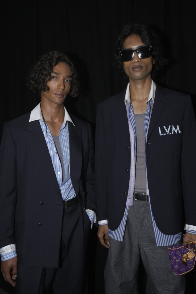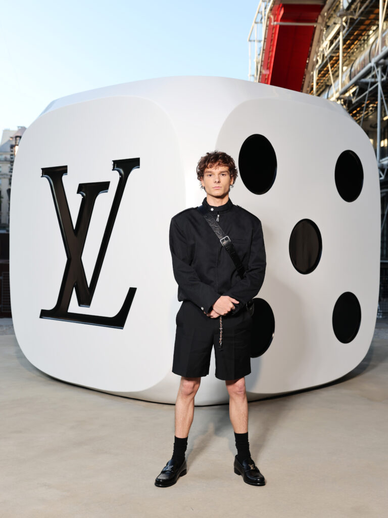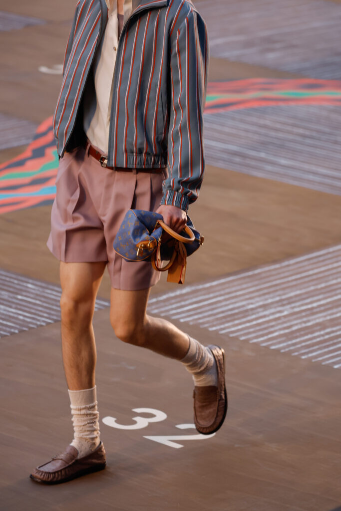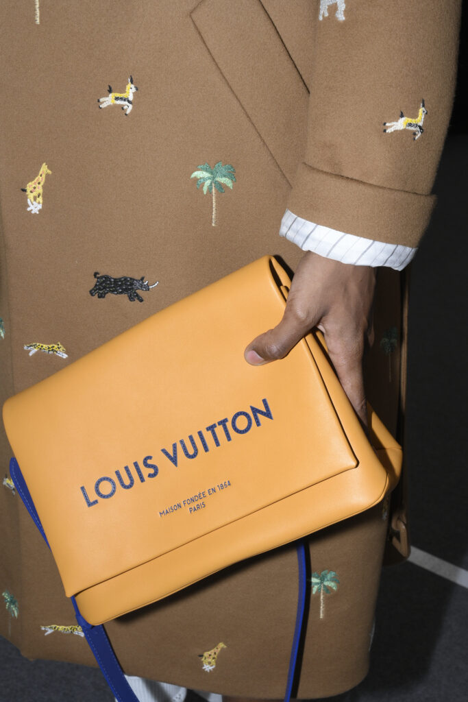 Événement marquant : Louis Vuitton intègre pour la première fois les imprimés et bagages conçus en 2007 pour le film culte de Wes Anderson, The Darjeeling Limited. On retrouve ces motifs sur des vestes brodées, des sacs monogrammés délavés ou encore des sneakers Buttersoft. Une manière brillante de faire entrer le cinéma dans le patrimoine maroquinier de la Maison.