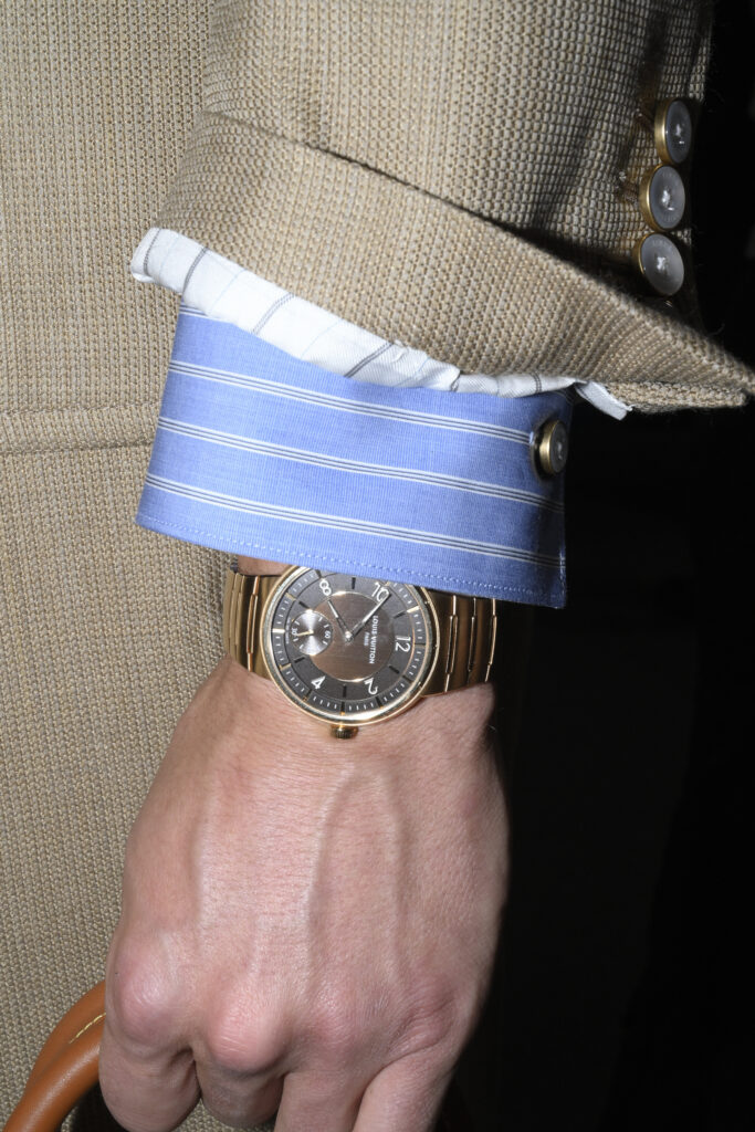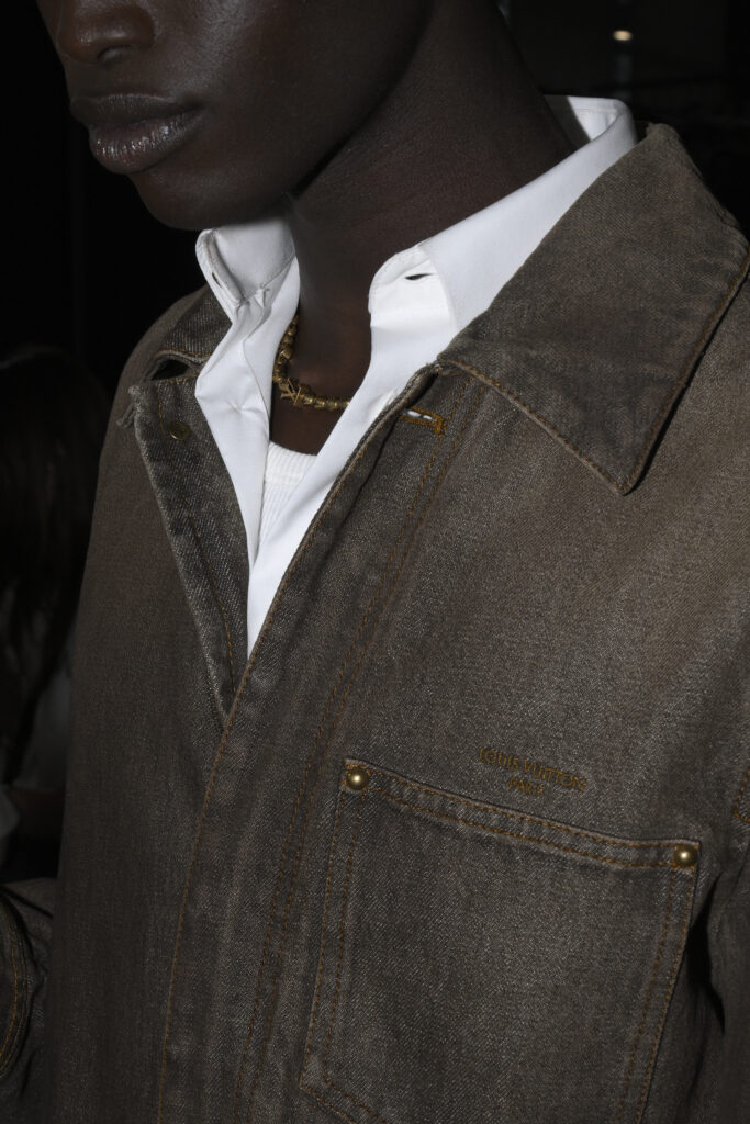 L’obsession du dandy usé par le soleil innerve toute la collection. Les tissus — toile brossée, rayures fanées, denim brun café tissé et non teint — semblent déjà empreints d’histoire. Les costumes sont souples, superposés, portés avec nonchalance. Le tailoring devient ici un vêtement de voyageur éclairé, raffiné sans rigidité.