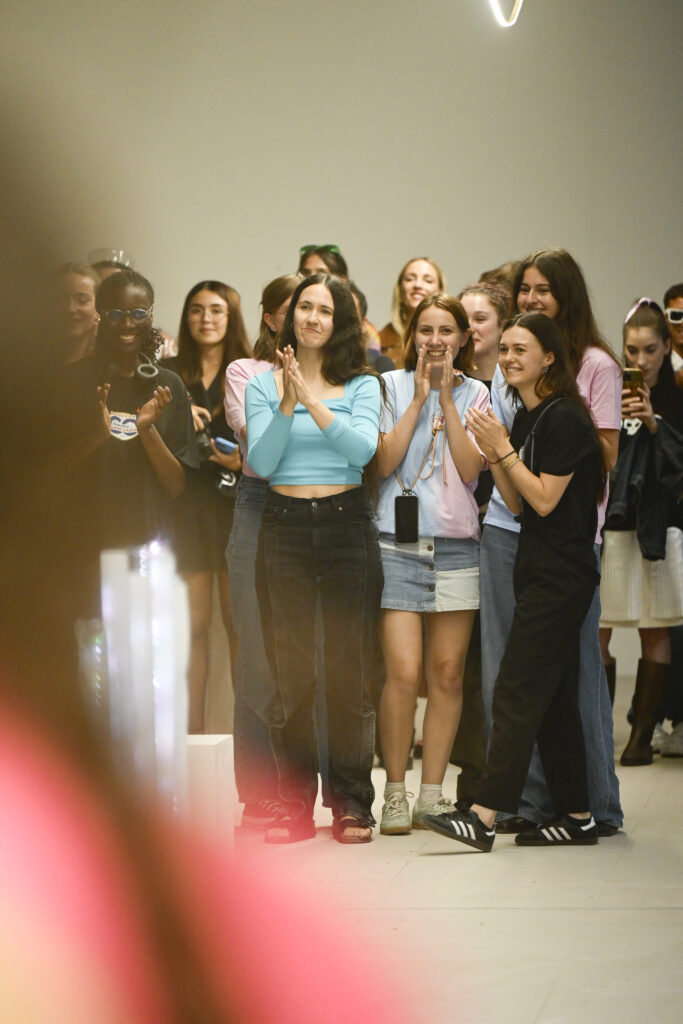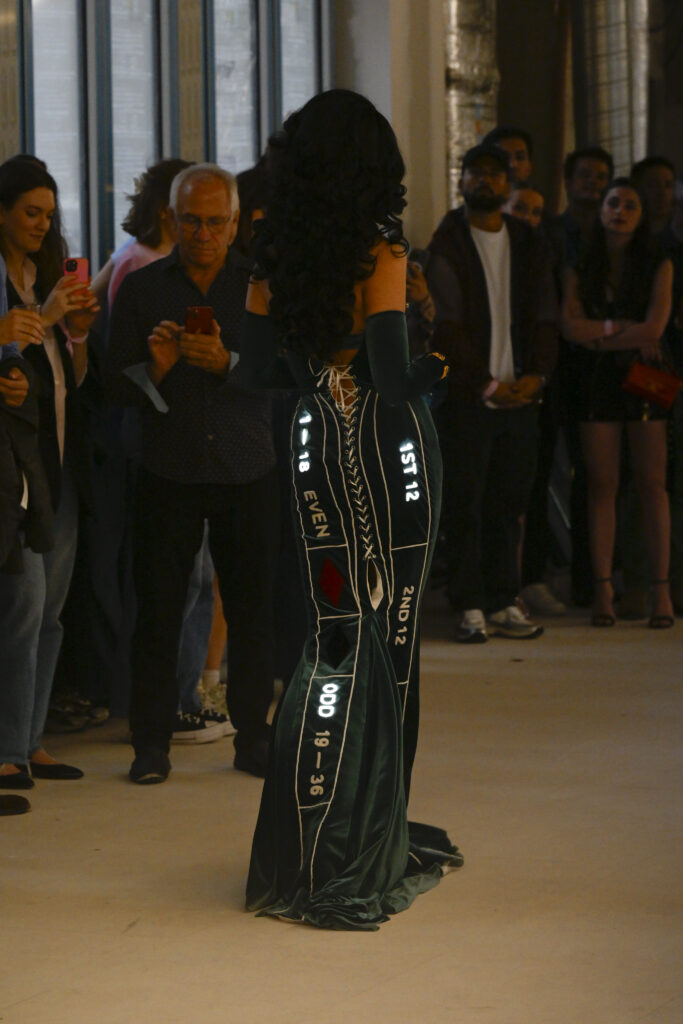 La performance est totale : musique live signée Scarlett, projections immersives, maquillage visionnaire orchestré par Make Up Forever (paillettes bioluminescentes, textures irisées, trompe-l’œil), coiffures sculpturales façon hologramme conçues par Oribe, et une expérience gustative électrisée par la tequila Saudade.