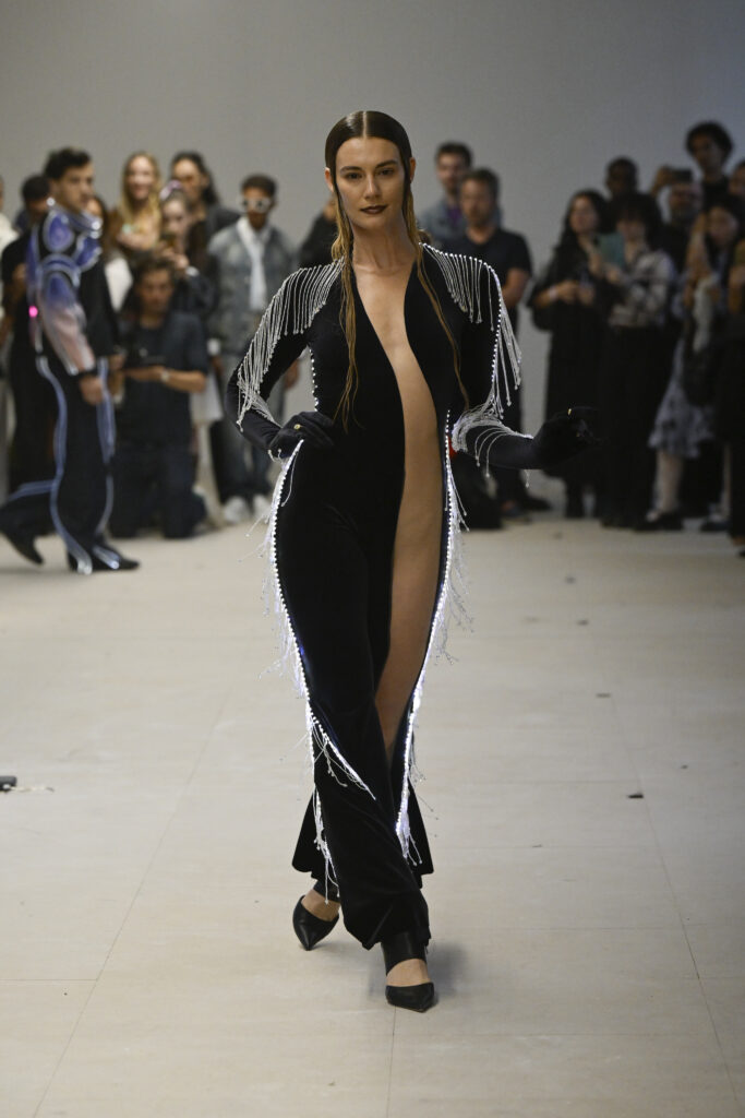Avec The Strip, Clara Daguin confirme sa place singulière dans la mode contemporaine : celle d’une prêtresse du vêtement augmenté, où l’intime fusionne avec la machine, et où chaque couture devient une onde. Sa couture est spectacle, sensation et réinvention — un trip visuel dans un Vegas mental, entre stroboscopes et introspection.