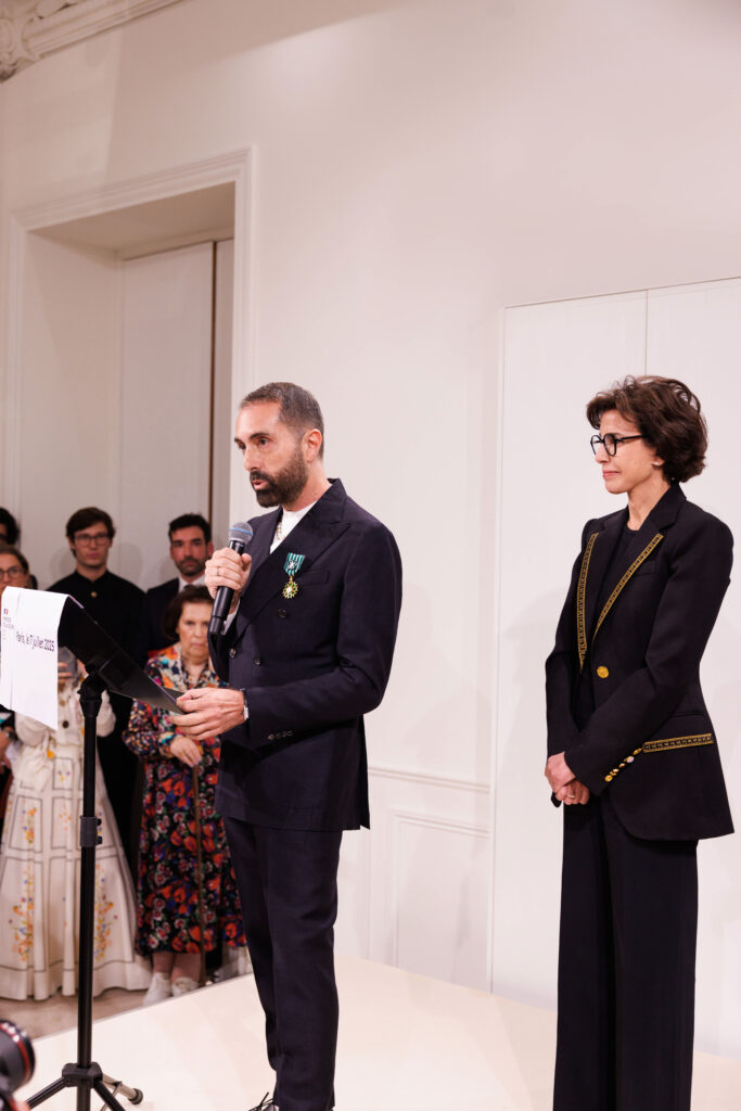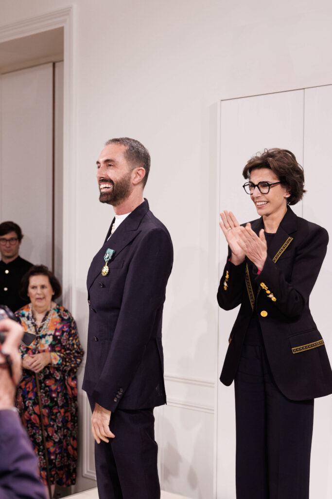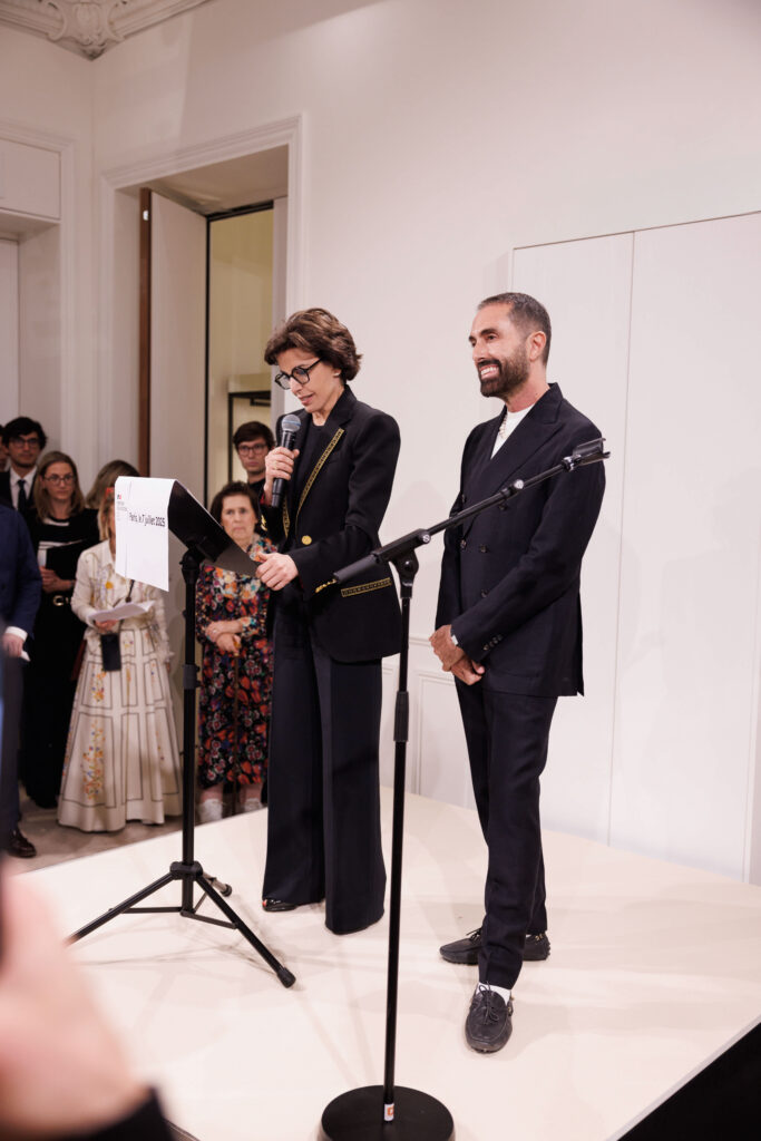 Pas de podium ni de mise en scène tapageuse cette saison pour la Maison Giambattista Valli. En lieu et place du défilé habituel, c’est dans l’écrin confidentiel de son siège parisien, au cœur de la Haute Couture Week de juillet 2025, que le créateur romain a choisi de présenter sa collection Haute Couture N°29. Un choix intimement lié à sa récente élévation au rang d’Officier de l’Ordre des Arts et des Lettres par la ministre de la Culture Rachida Dati – une distinction célébrant sa contribution exceptionnelle à la culture française.