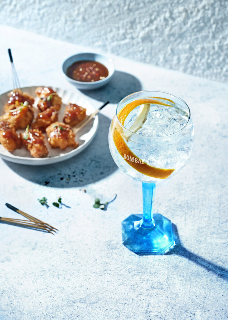Deux créations culinaires accompagnent cette vision : des bouchées de poulet croustillant, laquées au miel d’orange et gingembre, et des chips de sarrasin garnies d’un tartare pomme-concombre au thym. Chacune pensée comme une extension gastronomique du gin, elles traduisent la quête d’un accord parfait, au croisement du mixologie et de l’art culinaire.