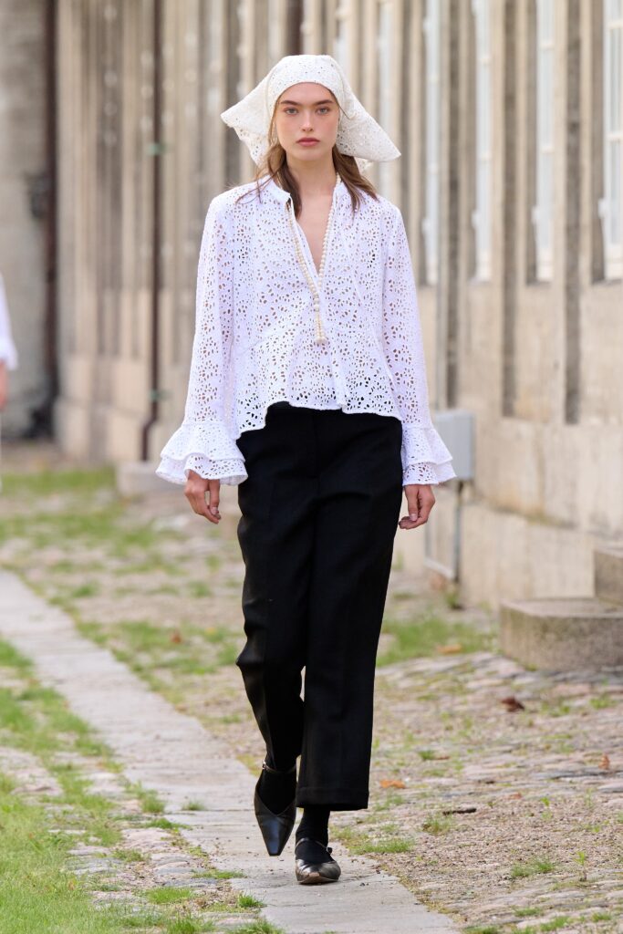 Les lignes de la collection sont aériennes et ouvertes, pensées pour accompagner le mouvement du corps plutôt que le contraindre. Les matières naturelles, les formes légères et les nuances délicatement estompées, comme patinées par le soleil, confèrent aux looks une fragilité raffinée. Les imprimés floraux Liberty, teintés de nostalgie, trouvent une nouvelle lecture plus intime, parfaitement intégrée à l’écriture singulière de la maison. Chaque pièce résonne tel un hymne discret au commencement du jour — ce moment où l’essentiel réside dans la conscience de l’instant.