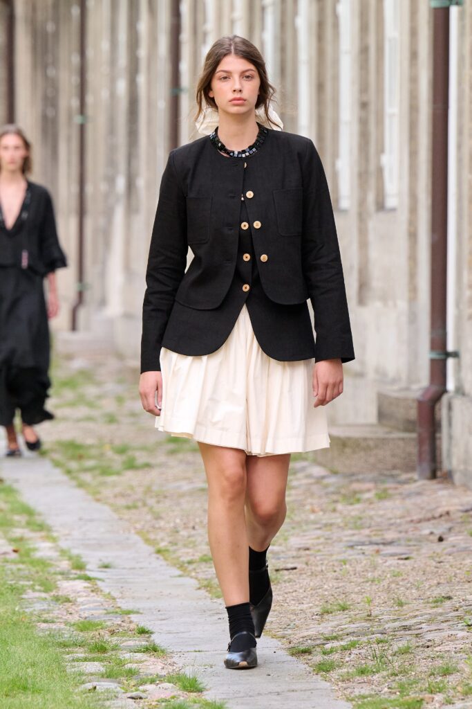 La nouvelle collection printemps–été de Skall Studio s’inscrit dans la continuité de l’histoire poétique La Danse, où la danse se révèle non pas à travers la discipline, mais à travers la liberté du mouvement et la sensualité. Cette seconde partie, Act II, déplace l’accent du formalisme des salles de ballet vers la spontanéité et l’intuition. La collection incarne la douceur et la confiance en un rythme intérieur qui guide l’individu lorsqu’il cesse de jouer un rôle et commence à ressentir. Le jardin matinal du Musée du design danois a servi de toile de fond à cette performance contemplative. La musique live de musiciens classiques a souligné la fluidité des silhouettes, instaurant un dialogue entre le tissu, le corps et le son.