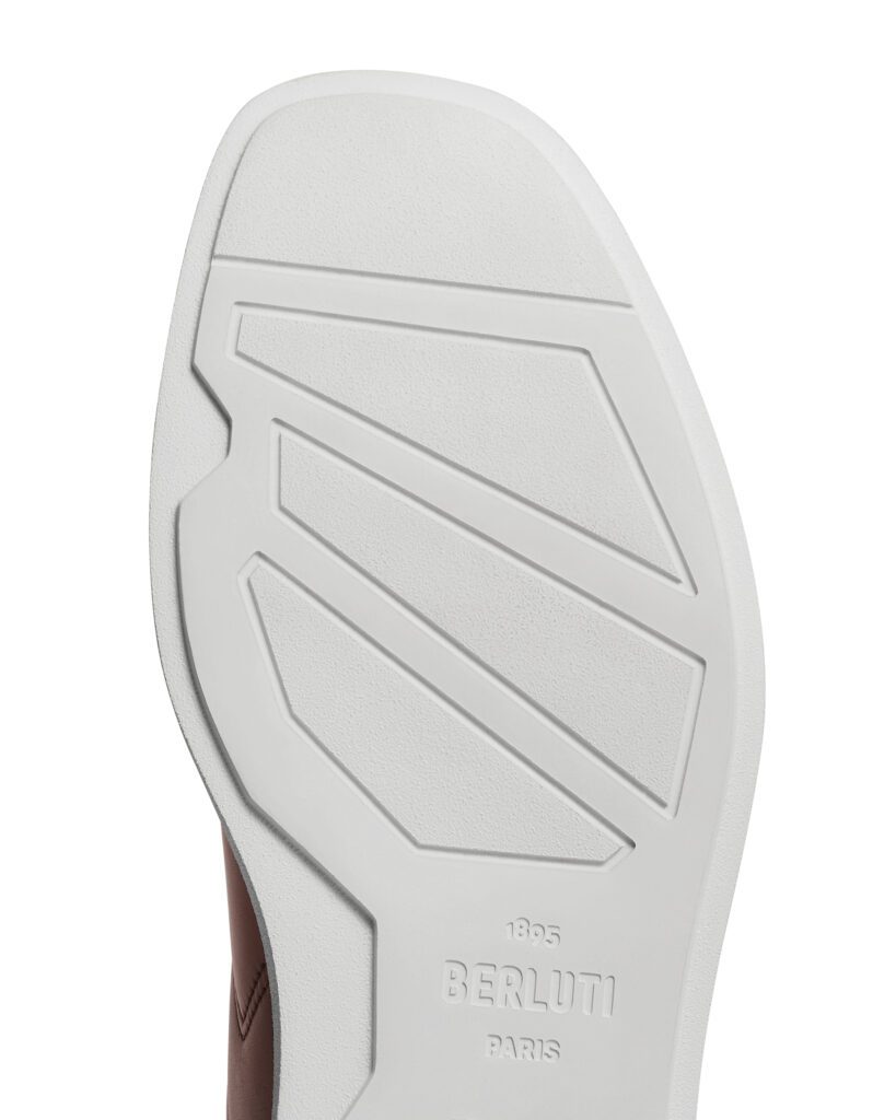 Sous la main, le cuir Venezia laser-gravé du motif Scritto — hommage calligraphique imaginé par Olga Berluti — gagne en flexibilité grâce à un nouveau bain assouplissant. À l’intérieur, des zones de rembourrage ciblées autour du talon et de la languette autorisent le « no-sock » chic, tandis qu’un bloc semelle densifié amortit le rebond . L’ensemble affiche un poids plume inédit pour la Maison, fruit d’ajustements que ses artisans ferrarais peaufinent depuis deux ans.
