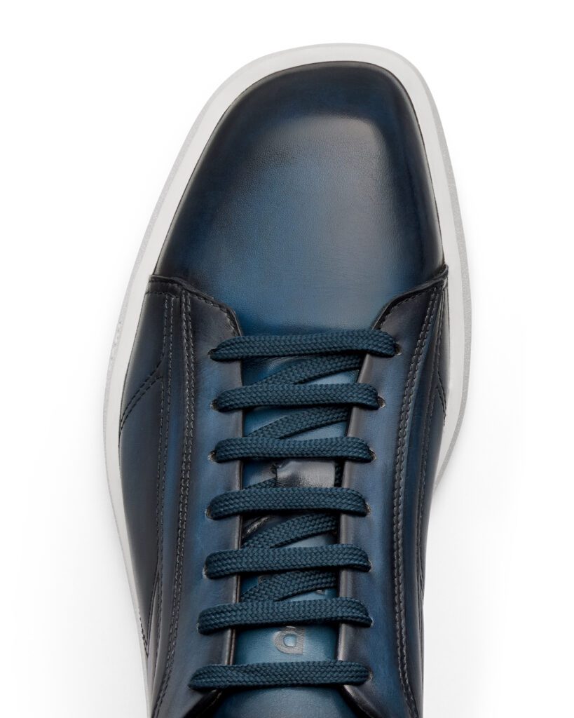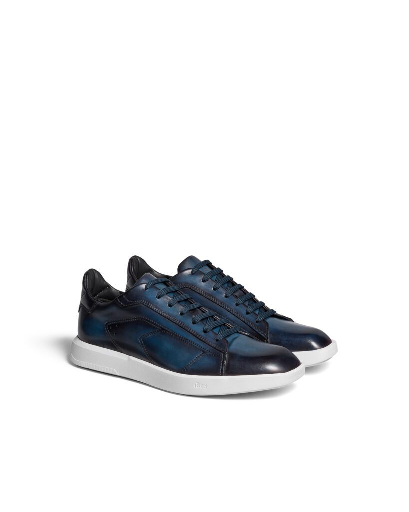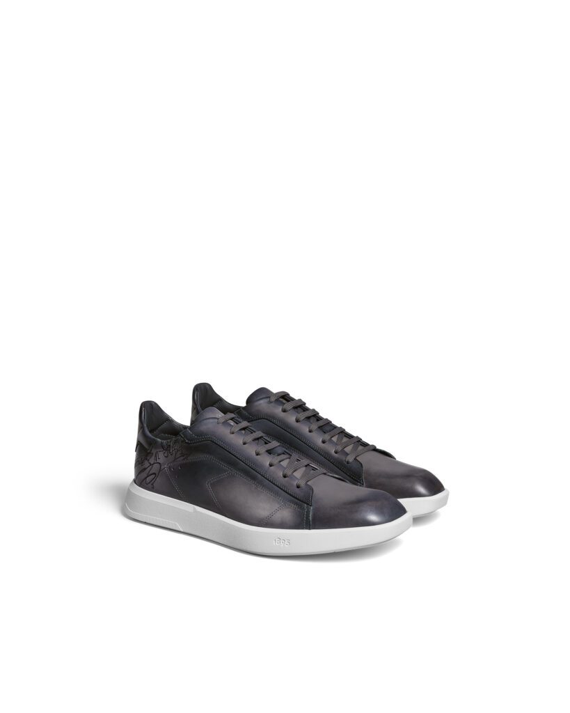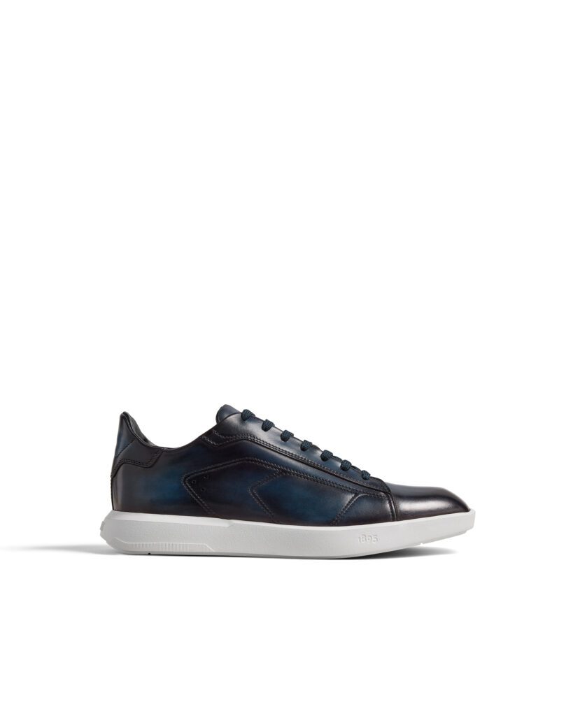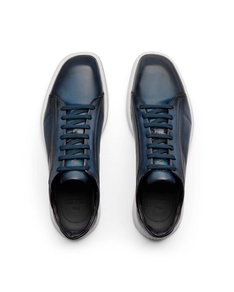 Déclinée en trois patines — Abisso bleu nuit, Marrone Intenso brun profond, Iron Grey anthracite — la Stellar 2025 revendique une polyvalence totale : jean selvedge le matin, costume Prince-de-Galles le soir, la basket s’accorde à la garde-robe sans forcer le trait . Un credo fidèle à l’« agile spirit » chère à Berluti, où la patine exprime la personnalité de son porteur autant que le savoir-faire de la Maison.