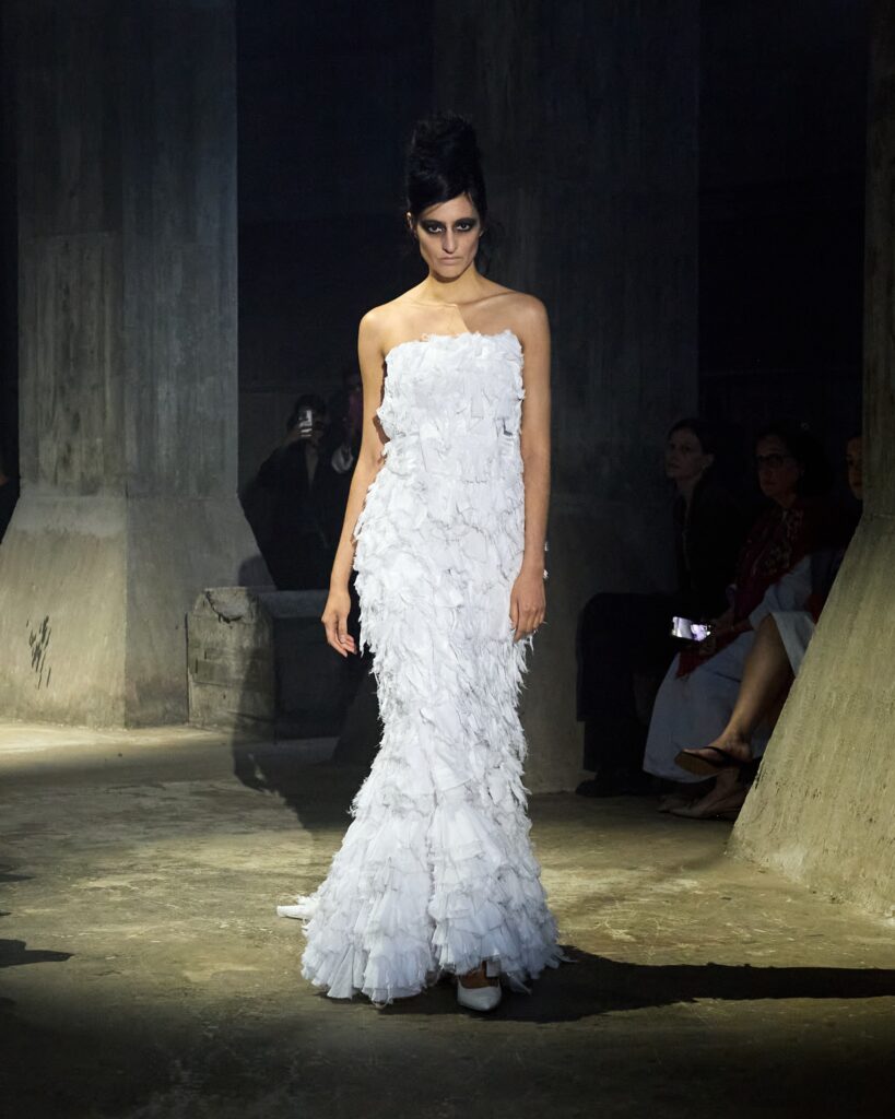 Martin Quad a fait ses débuts dans le calendrier officiel de la Copenhagen Fashion Week avec la collection printemps-été 2026 intitulée « 6FOLDFATE / Sixfold Fate pt.2 », présentée dans l’espace unique du Brønshøj Vandtårn. Cette collection prolonge une performance théâtralisée et pantomimique, explorant les thèmes de la destruction, des traditions et de la haute couture subversive à travers l’atmosphère des services d’urgence. Inspiré par le projet photographique Eugene Richards « The Knife and Gun Club », le designer ne s’attache pas aux maladies ou aux blessures, mais à l’esthétique tendue et à l’espace de la médecine d’urgence : stérilité, éclairage fluorescent, chaos contenu et précipitation latente. La collection est structurée autour du symbole de « l’Étoile de la Vie », chaque pièce racontant une histoire à travers six actes — une méditation sur la fragilité, l’intervention et la restauration de l’être humain.