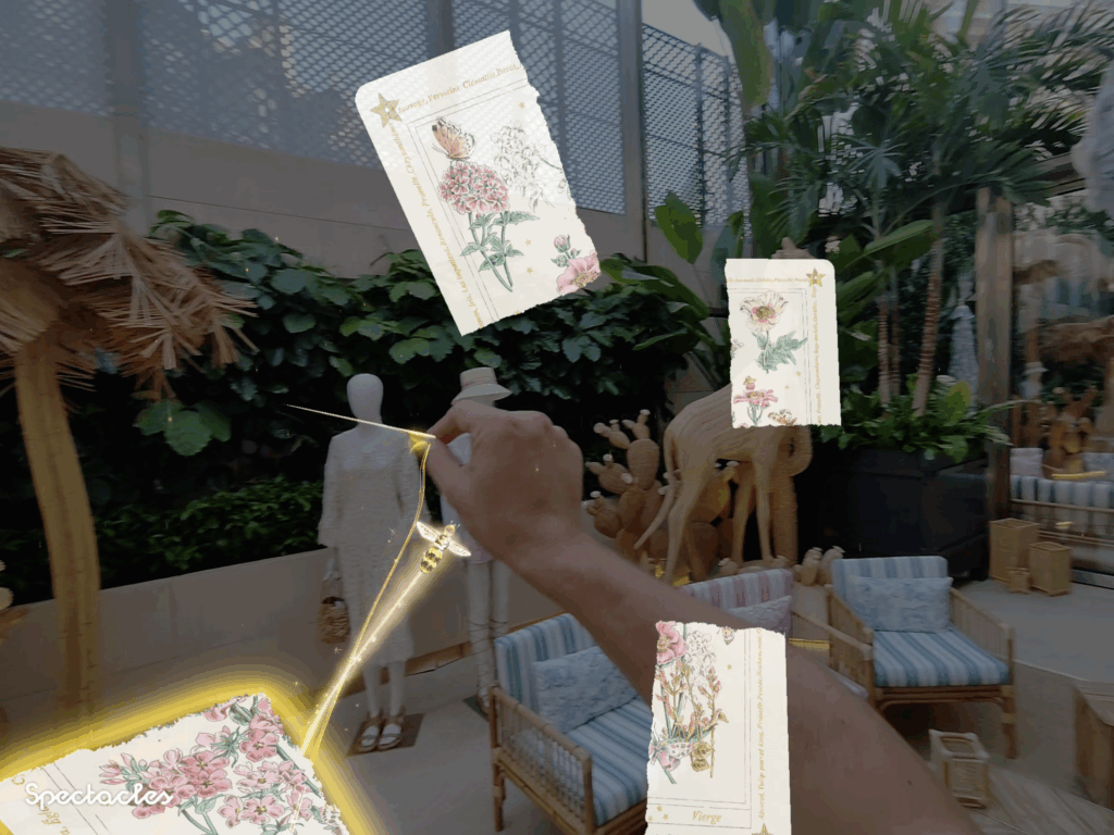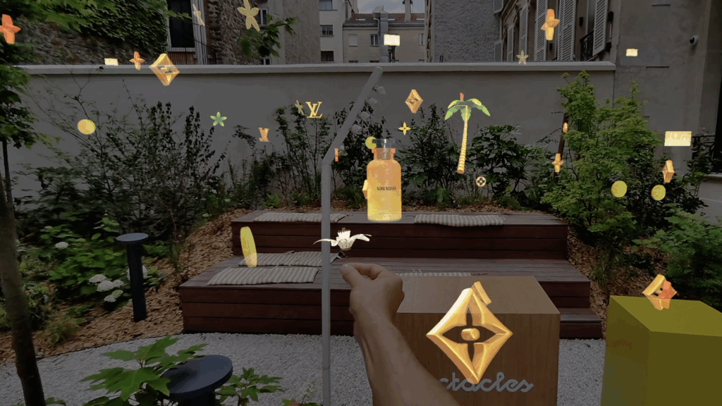 Au détour d’un geste de la tête, l’abeille emblématique de la Maison surgit dans le champ visuel, invitant l’utilisateur à choisir une carte zodiacale. Fragmentée en quatre éclats, la constellation se rattache virtuellement comme un tambour-beading de l’atelier, avant de s’animer en 3D et de libérer la symbolique du signe. Pensée par le studio Playar, l’expérience mêle artisanat et métaphysique, « tissant un lien entre tradition et modernité » selon le communiqué .