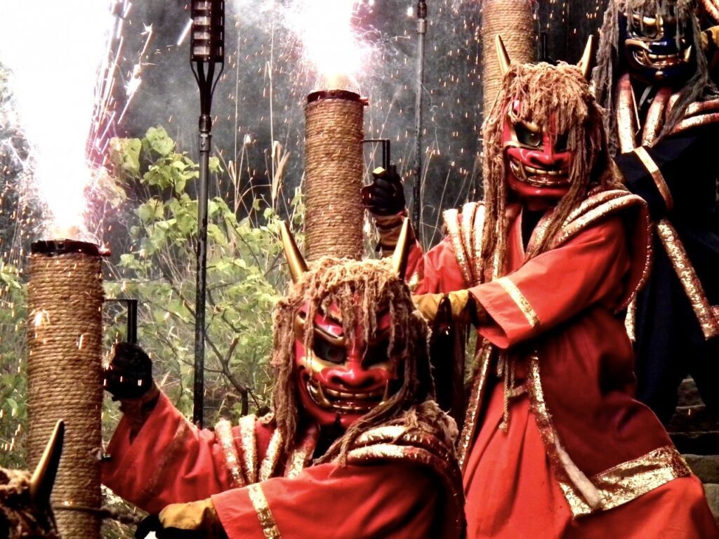 À Noboribetsu, haut lieu géothermique, les sources chaudes fumantes forment le décor spectaculaire du Jigoku Matsuri, la « fête de l’Enfer ». Chaque fin août, la vallée de l’Enfer (Jigokudani) s’embrase au rythme de feux d’artifice portatifs projetés dans le ciel, simulant les éruptions volcaniques. Ce rituel, dédié à la divinité Yukijin, mêle folklore ancestral et poésie visuelle, transformant le site en un théâtre mystique.