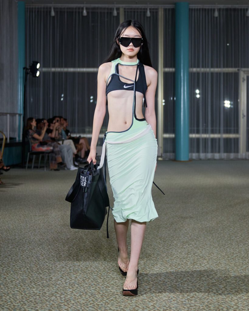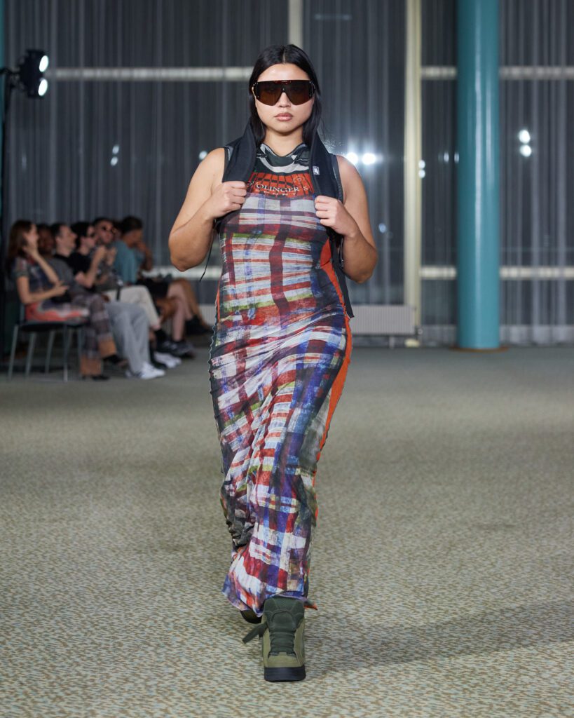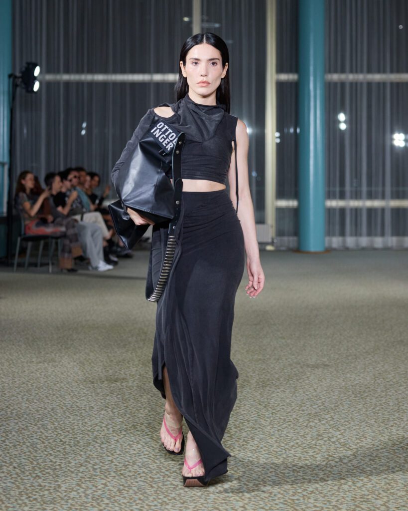 Le 2 juillet 2025, à 21h, dans le cadre brut de Messe Berlin, Heidi Olinger redéfinit une figure archétypale de la féminité contemporaine : celle de la cool older sister. Sa collection Resort SS26, aussi narrative qu’esthétique, ne cherche pas à séduire par l’épure ou le minimalisme, mais par une poésie brute, faite de contrastes assumés et de réminiscences émotionnelles.