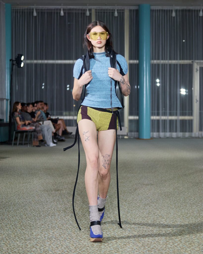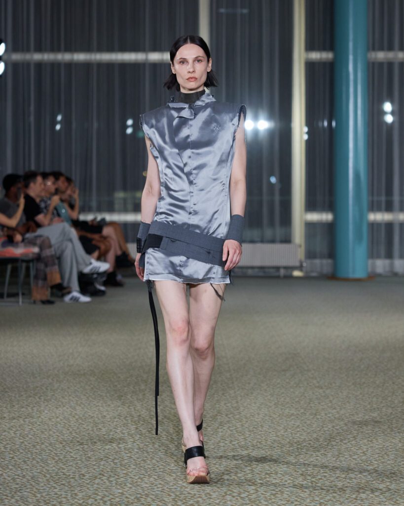 Loin des podiums aseptisés, ce défilé berlinois s’inscrit dans une tension maîtrisée entre la vulnérabilité et l’autorité. She breaks the rules first, so you’re less afraid to follow, dit le manifeste. Et c’est bien cela que propose cette collection : une mode qui a déjà vécu pour nous autoriser, à notre tour, à exister pleinement.