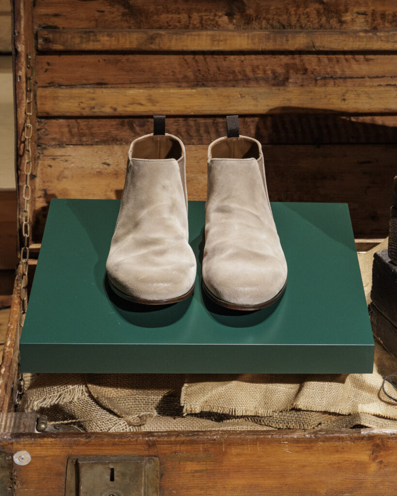 Au premier plan, l’iconique Shanghai, lancée en 1929, renaît dans une version estivale. Fidèle à son design originel – perforations distinctives, franges et mix de matières – elle est repensée pour les journées chaudes : construction Goodyear souple, semelle cuir légèrement rembourrée, silhouette allégée. Une façon d’ancrer ce modèle patrimonial dans le quotidien contemporain sans en trahir l’âme.