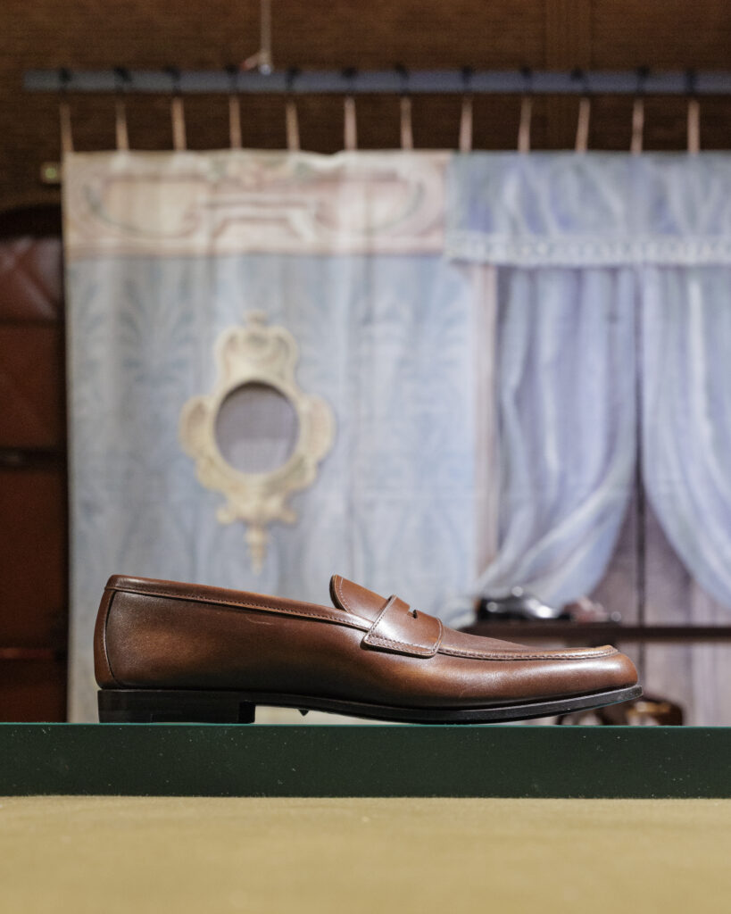 Deuxième acte : la collection British Spring, qui incarne la vitalité d’un été britannique. Mocassins en daim souple et modèles Derby décontractés forment une ligne versatile, entièrement fabriquée au Royaume-Uni grâce à la technologie Goodyear 2.0. Ces pièces conjuguent confort prolongé et raffinement, adaptées aussi bien à une promenade matinale qu’à un dîner élégant.