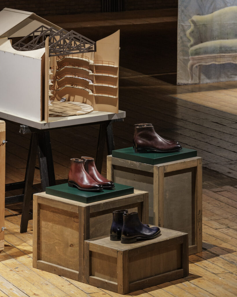 En investissant la scène du Piccolo Teatro, Church’s a orchestré un défilé narratif où chaque ligne – Shanghai, British Spring, Crown – compose un chapitre d’un même récit : celui d’un soulier qui traverse le temps, tissant un lien entre tradition et modernité.