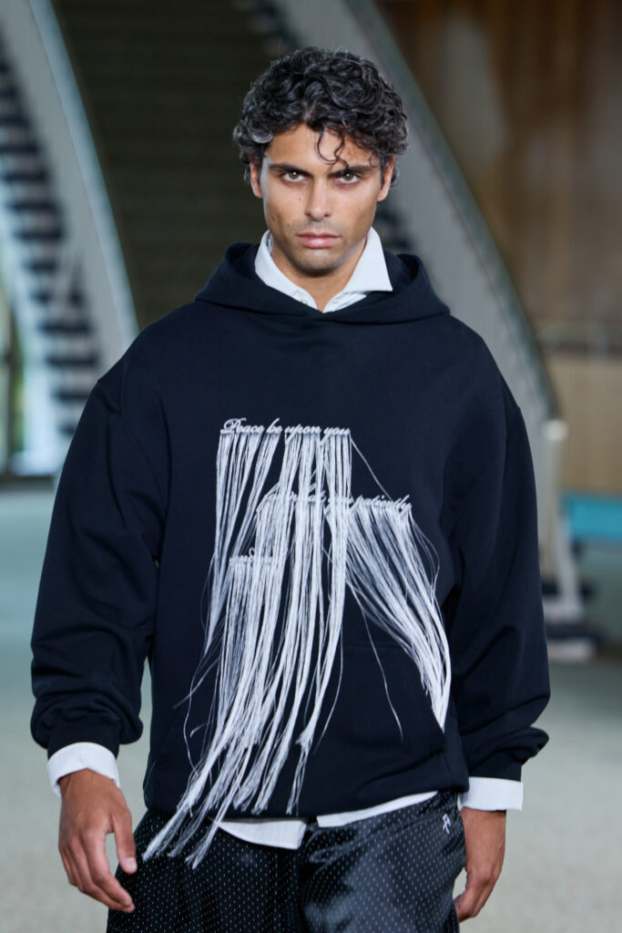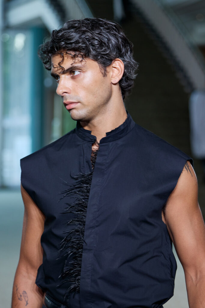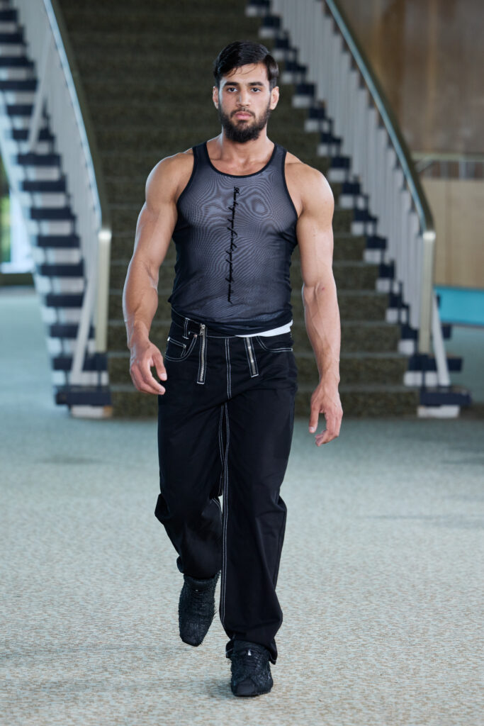 La vie est suspendue, elle se déroule ailleurs. Dans un manifeste-poème puissant, Benjamin Huseby et Serhat Işıkdévoilent leur collection SS26 « Imitation of Life », présentée le 2 juillet 2025 à Berlin dans le cadre d’une interventionimmersive soutenue par InterventionFashion Council Germany et Berlin Fashion Week. Ce n’est pas un simple défilé, mais un acte de survivance — artistique, morale et collective.