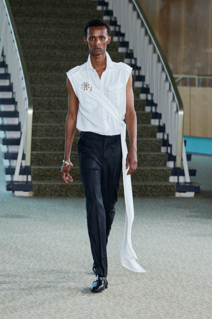 Les vêtements, eux, rejouent les rites d’une enfance déchirée mais précieuse : costumes d’archives reconstituéstenues de fête familialesuniformes imaginaires, le tout dans une palette parfois clinique, parfois onirique. La coupe est protectrice ou rigide, selon qu’elle évoque l’étreinte ou la défense. La texture, elle, oscille entre tendresse (jersey, tulle, laine fine) et gravité (cuir, métal, doublures techniques).