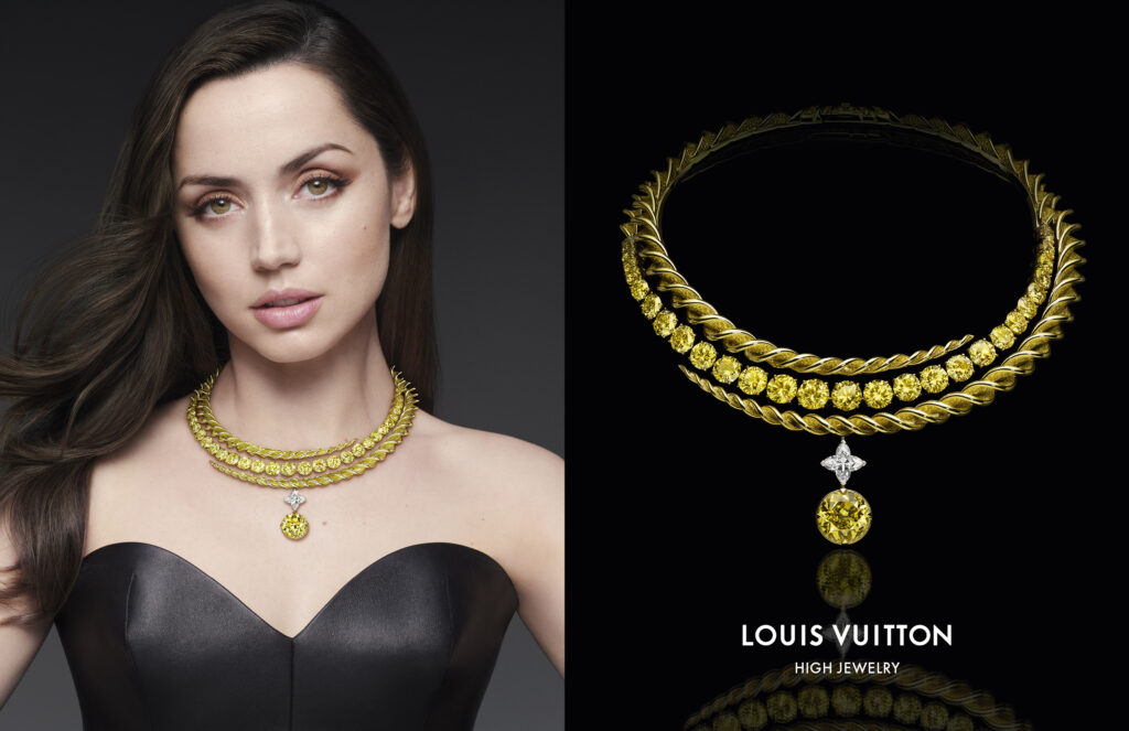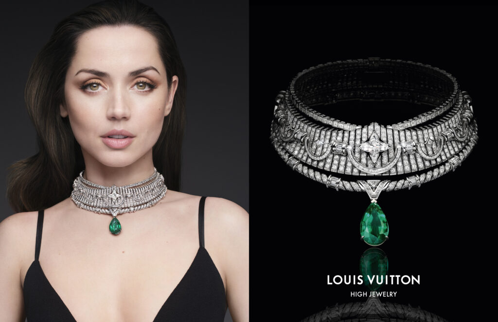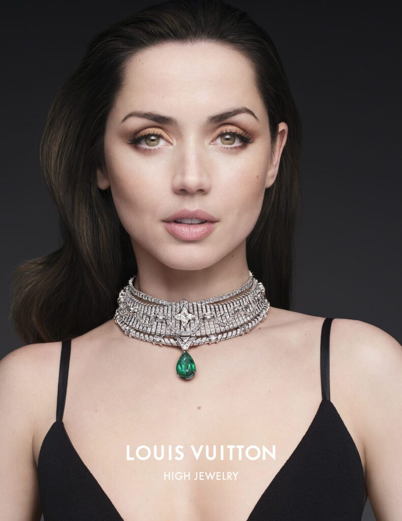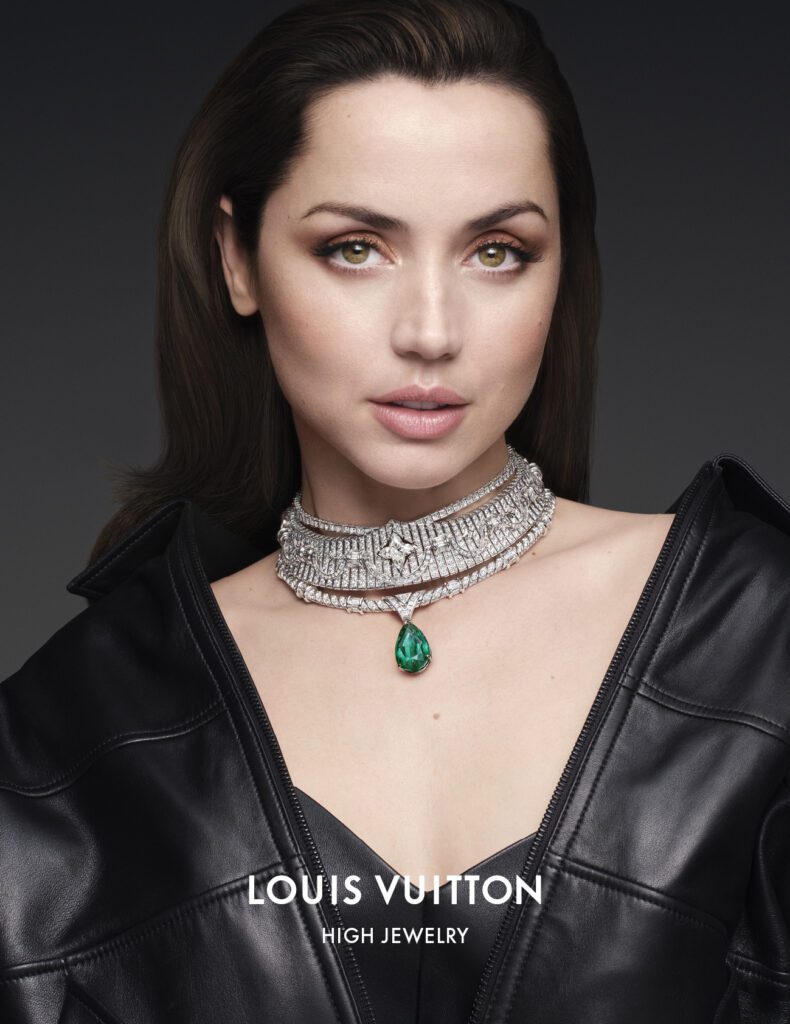 Érigée en muse contemporaine, Ana de Armas incarne la quintessence de l’élégance Vuitton. Sa présence traduit un équilibre entre intensité et raffinement, offrant un visage universel à cette joaillerie pensée comme une odyssée esthétique. Photographiée dans des mises en scène où la lumière devient protagoniste, elle révèle la force sculpturale et la délicatesse des pièces.