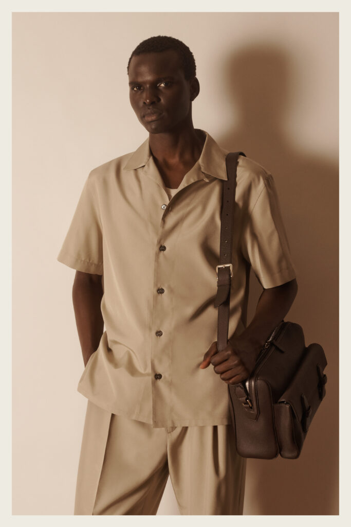 Pensée pour être vécue en extérieur, à la lumière du jour, cette collection compose un vestiaire fluide et lumineux, où tout — du mocassin souple aux sandales légères, des sacs spacieux aux vestes aériennes — exalte l’idée de légèreté italienne comme un art de vivre.