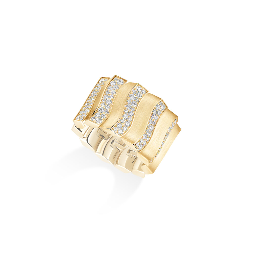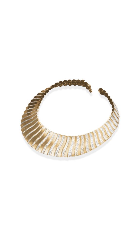 Le choix n’est pas anodin : Valérie Messika, fondatrice et directrice artistique de la maison, a conçu Terres d’Instinct comme une ode à la force intérieure, entre paysages bruts et sensualité du mouvement. Dans ce chapitre, Mirage se distingue par un jeu de lignes sinueuses, d’ombres et de lumières qui suggèrent les mirages désertiques — illusions mouvantes transcrites en diamants.