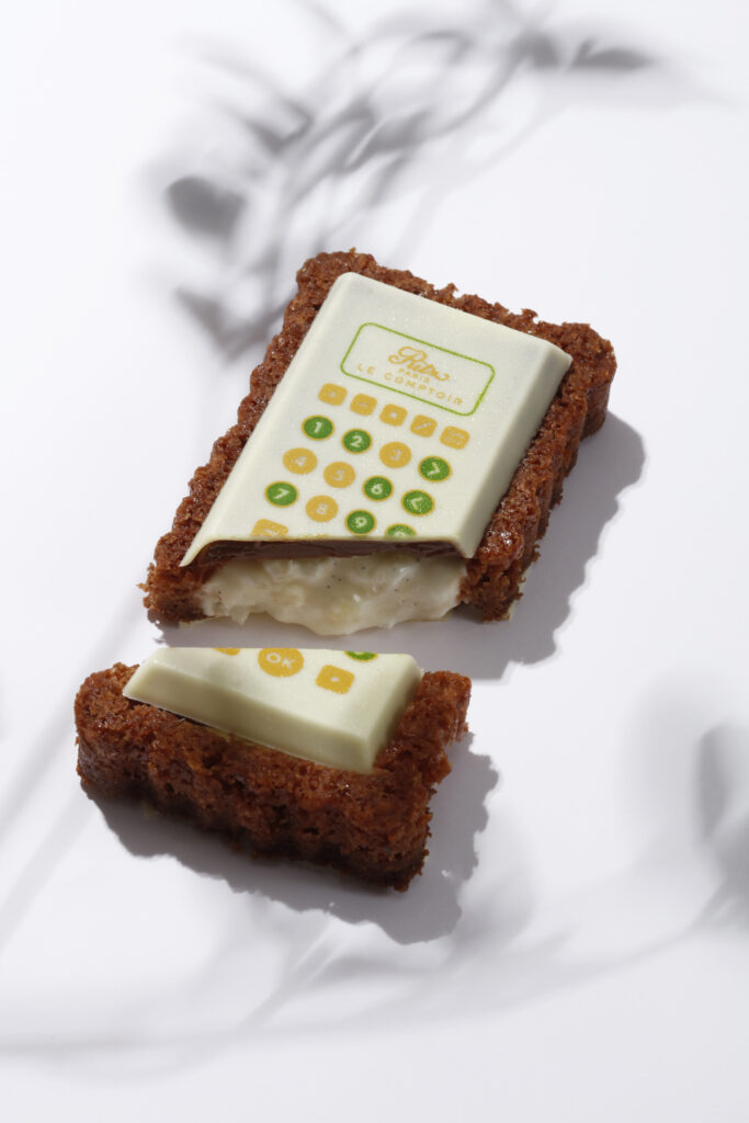 La star de cette rentrée est sans doute le Ritz au Lait Pâte à Tartiner (16 €). Dans un sablé cacao-noisette se love un riz au lait crémeux, twisté par une pâte à tartiner onctueuse et des éclats de noisette croquants. La pièce est surmontée d’une calculatrice en chocolat, clin d’œil savoureux qui prouve que les mathématiques peuvent être un plaisir à croquer.