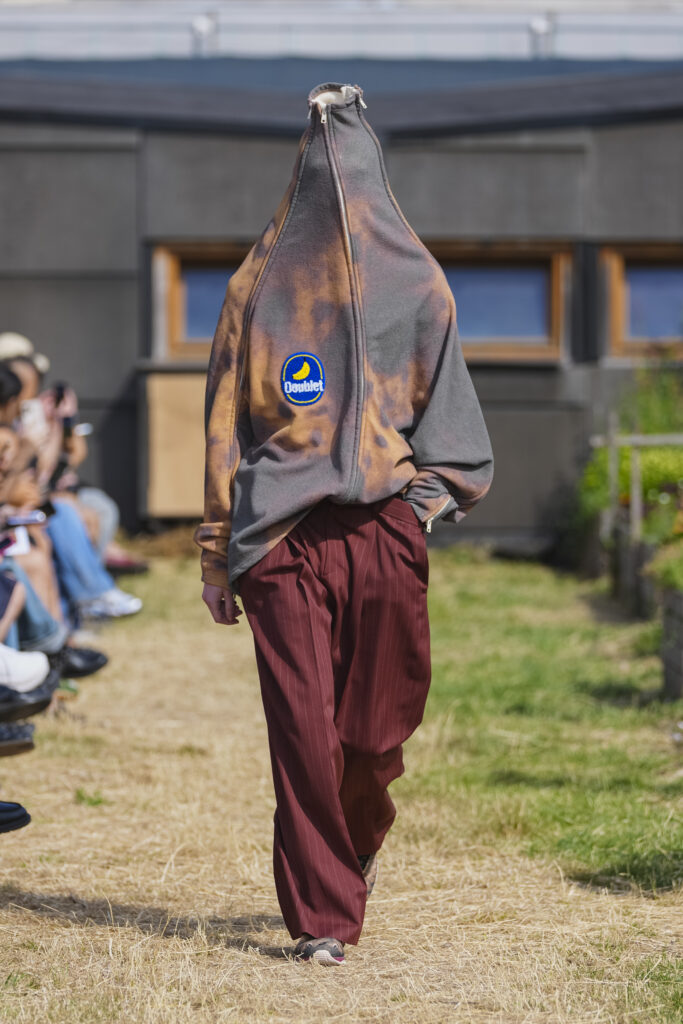 Chez doublet, la frontière entre vêtement, performance et illusion devient floue. Pour sa collection SS26, Masayuki Ino signe un défilé halluciné autour du thème du cirque, du freak show, et de la perception altérée — une mise en scène poétique du bizarre.