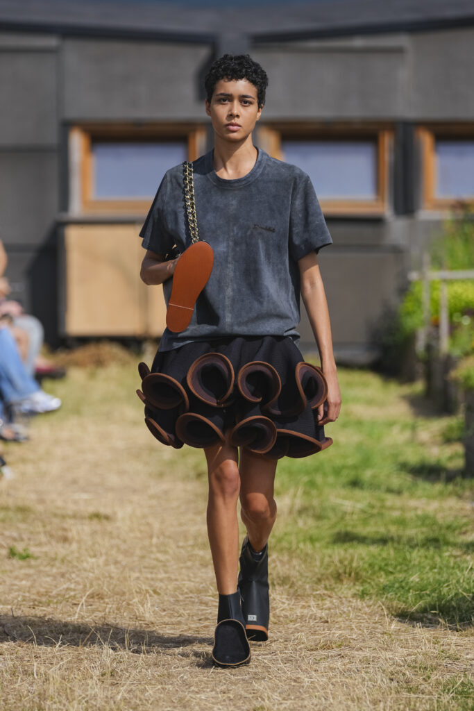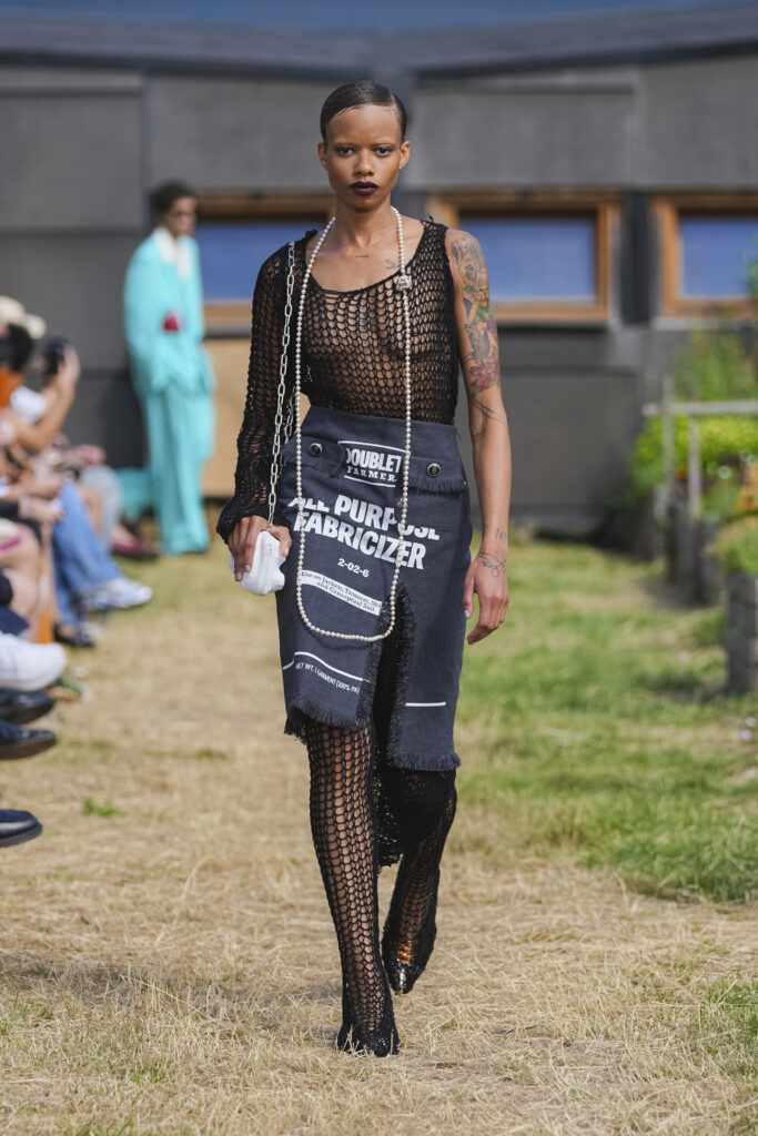 La collection SS26 ne cherche pas à être belle selon les codes classiques : elle revendique un autre regard, une vision où la transformation est la vraie finalité de la mode. Une ode au mouvement, à l’impermanence, et à la surprise textile. Chez doublet, l’étrange devient émouvant, et la mode un terrain d’illusions où chacun peut se réinventer.