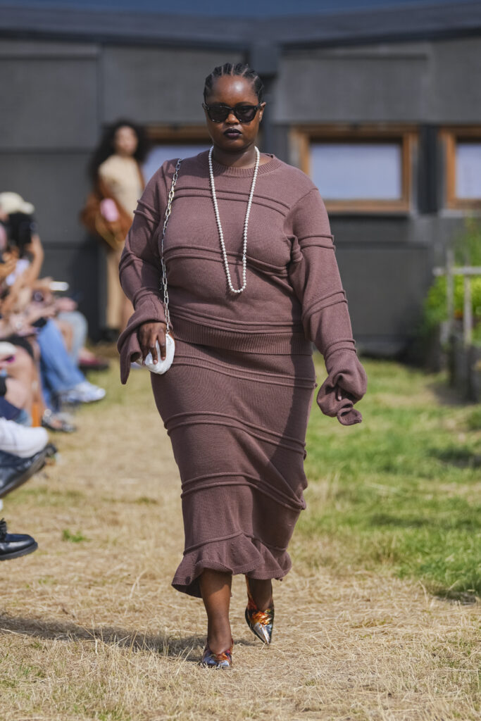 Le casting mixe silhouettes atypiques, membres amputés et corps non normés dans un hommage assumé aux artistes de cirque — sans pathos, mais avec une générosité inclusive. Le tout, renforcé par une bande-son électro carnavalesque et un décor inspiré de fêtes foraines psychédéliques, où les mannequins surgissent d’un rideau de miroirs.