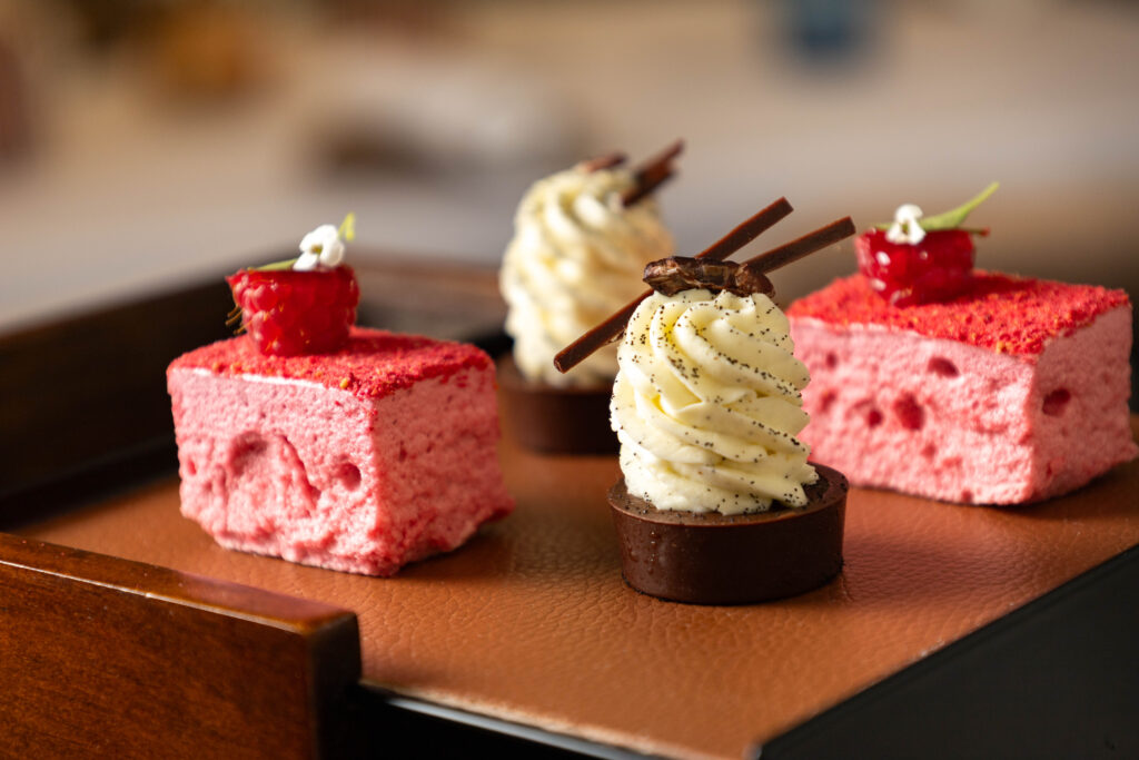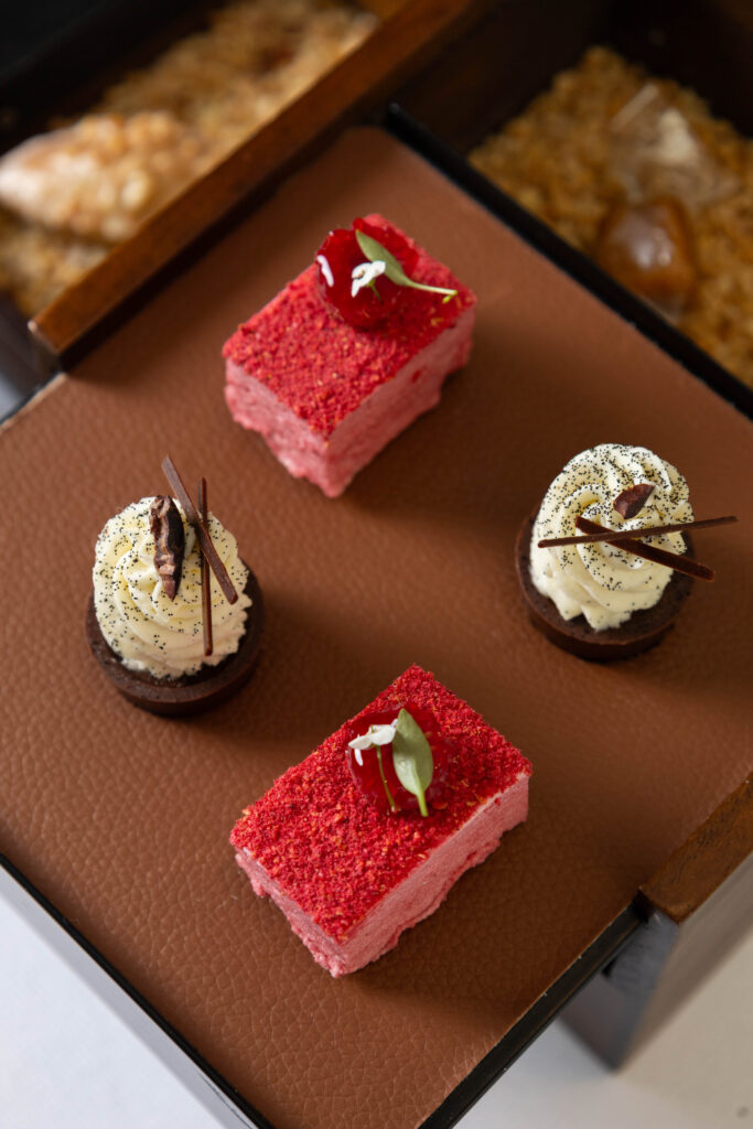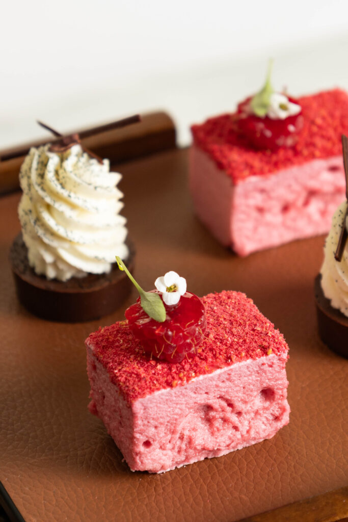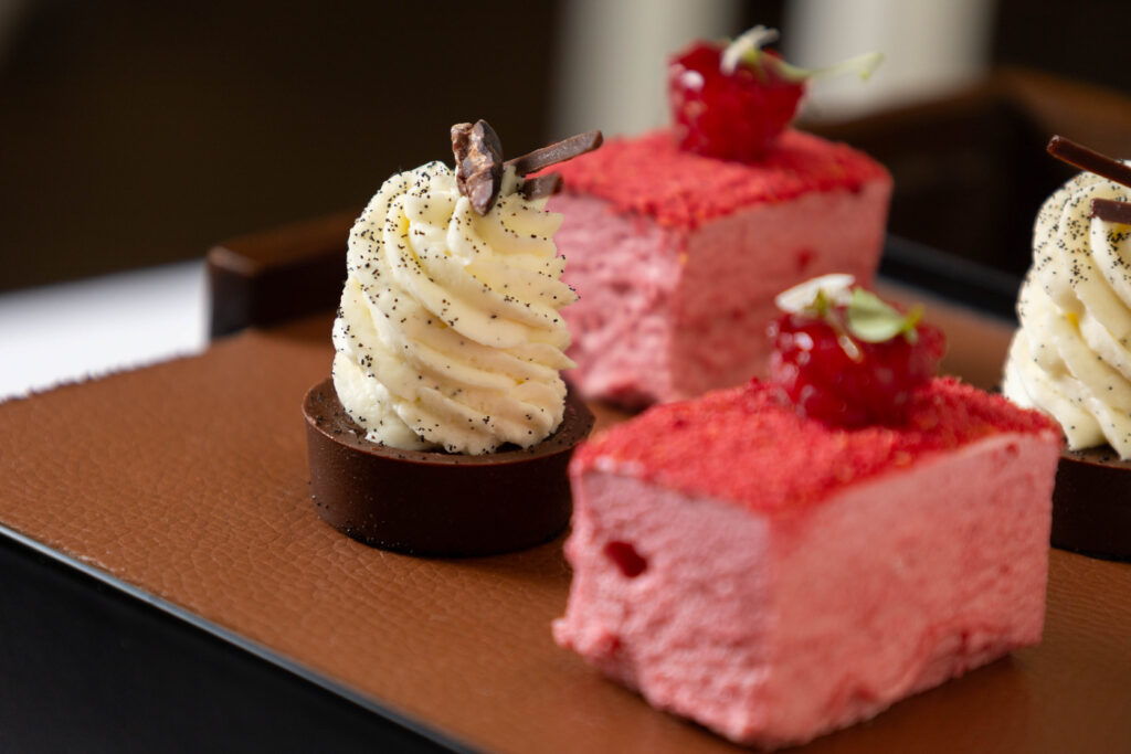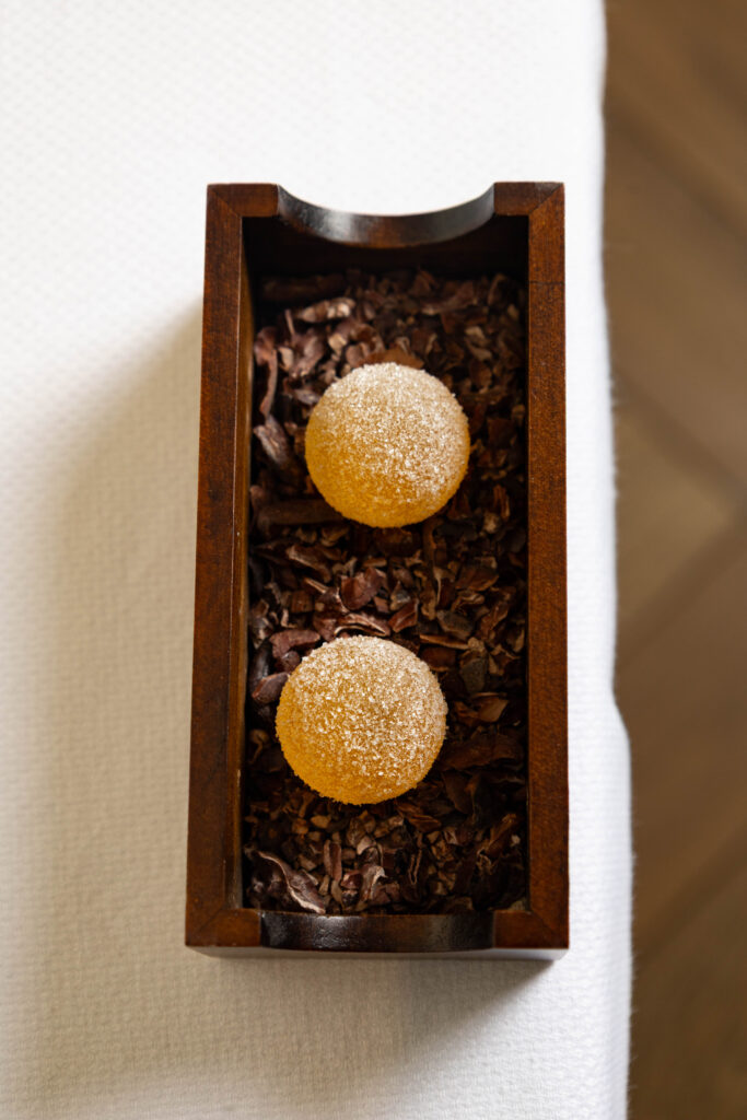 - Tomates cerises marinées : passées au chalumeau, puis plongées 24 h dans un sirop hibiscus-gingembre – résultat : un pickle chic, presque japonisant.