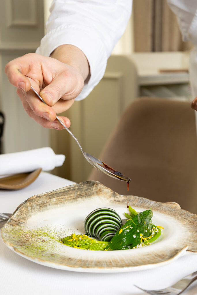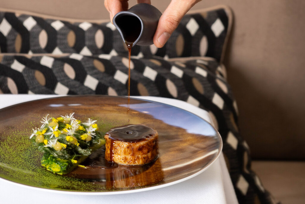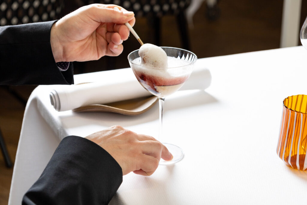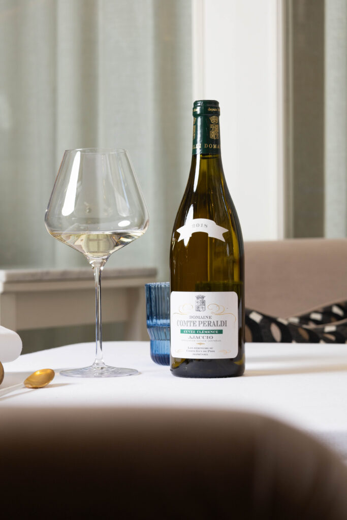En salle, l’ancien bras droit de Marc Veyrat, Pascal Drouet, incarne un service « moderne, respectueux, incarné » : aucun protocole compassé, mais l’intelligence du moment, l’art d’anticiper sans s’imposer . Sa cave fait dialoguer cuvées rares comme « Sérum de Vie » (Carignan 2020) ou l’élégante Clémence 2018 du domaine Comte Peraldi avec la cuisine du chef, jouant la rencontre entre profondeur et fraîcheur