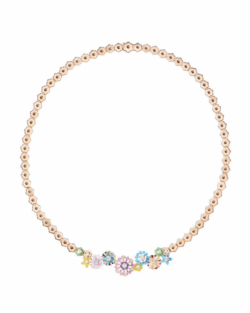 Ces bijoux évoquent un jardin printanier où chaque gemme devient pétale, chaque pli une corolle, pour une esthétique à la fois précieuse et ludique.