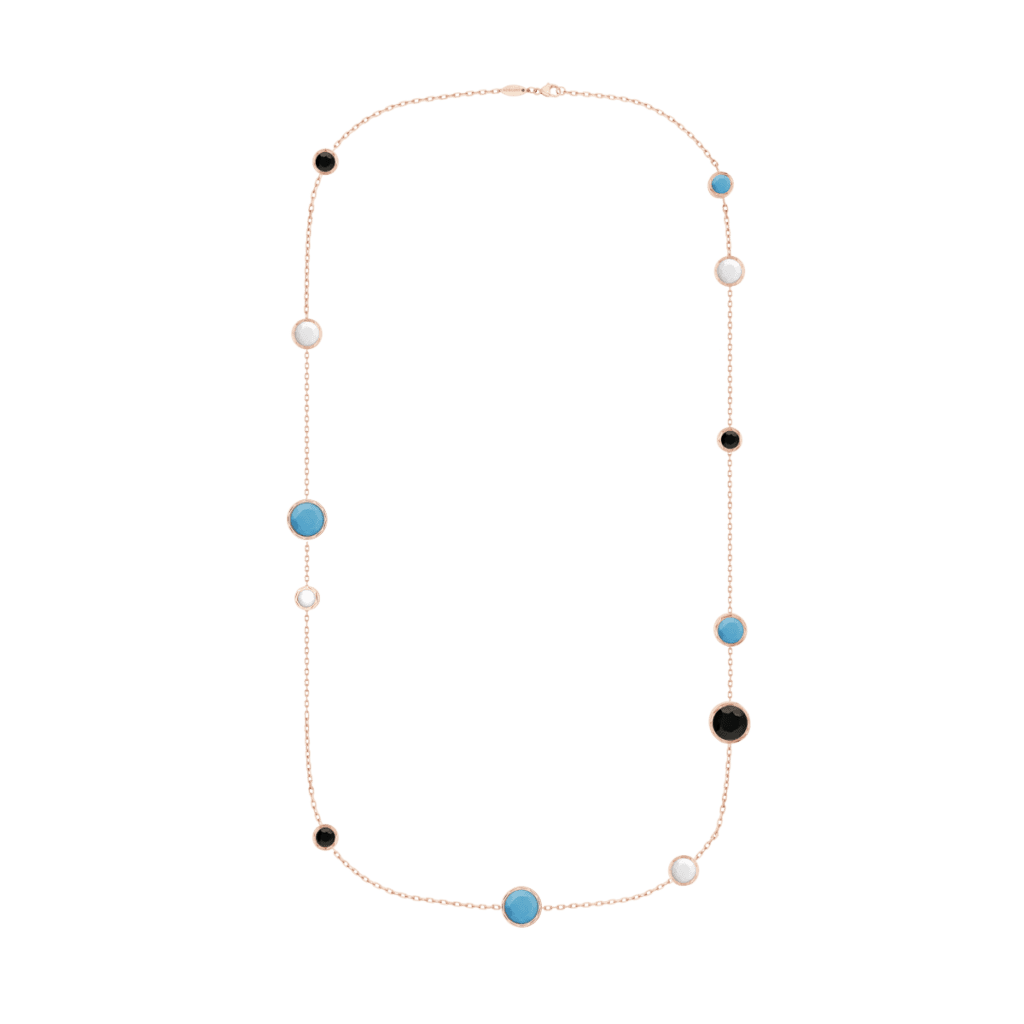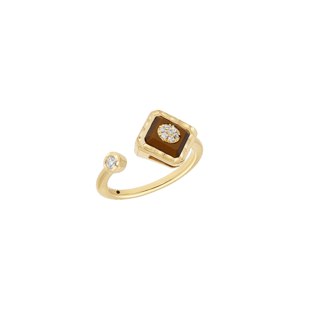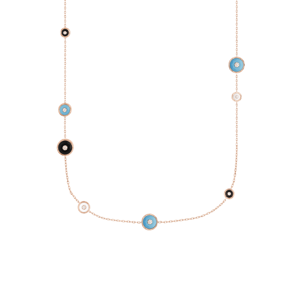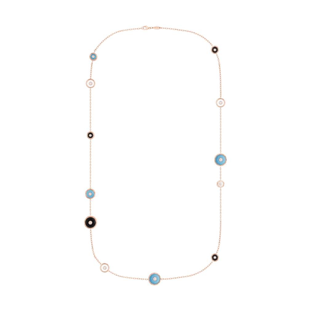 Enracinée dans la joaillerie Art déco, la malachite déploie ses veines hypnotiques ; la turquoise, pierre solaire par excellence, apporte une clarté pop. Korloff les associe à l’or poli comme à l’or brossé, créant des pièces où la pierre n’orne pas l’objet : elle le commande, impose son rythme, déclenche la narration chromatique.