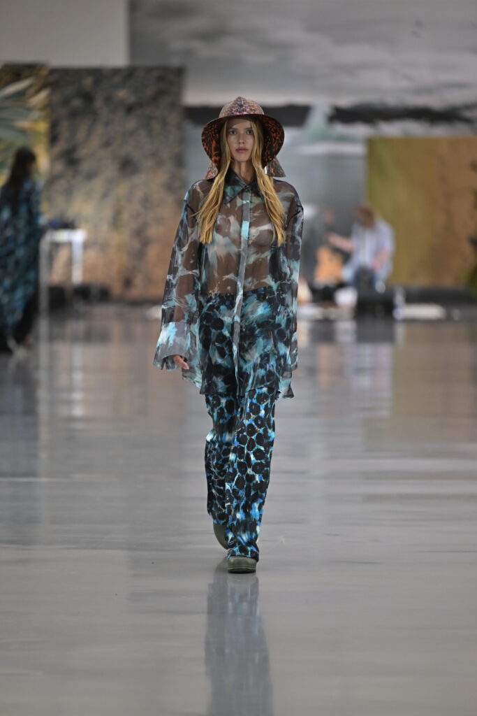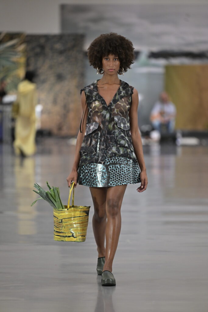 Sur le podium zurichois, sa dernière collection déploie un vestiaire poétique et fonctionnel, où chaque pièce raconte une métamorphose. Les objets du quotidien — outils de jardinage recyclés, plastiques retravaillés — deviennent textiles nobles. Textures granuleuses, impressions exclusives, accessoires hybrides : tout concourt à bâtir une esthétique post-industrielle où le rebut devient ressource, et la matière, manifeste.