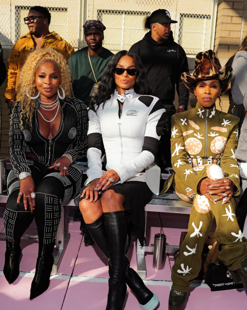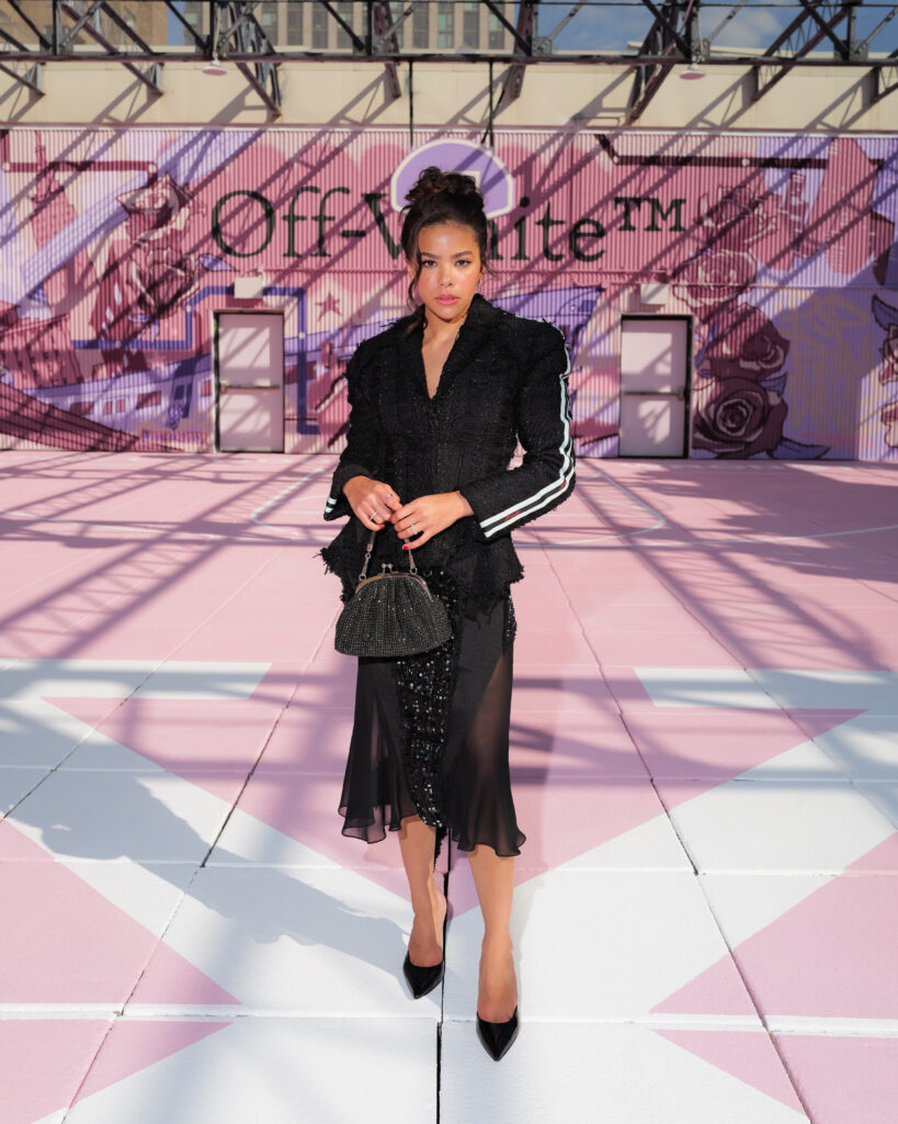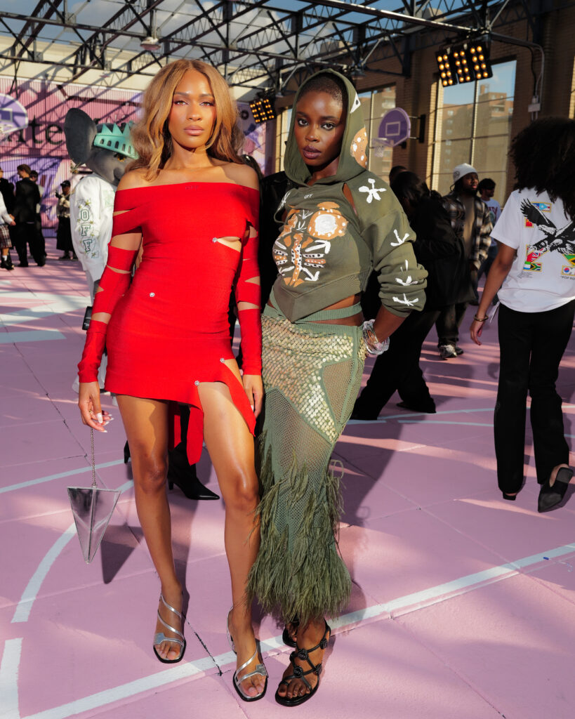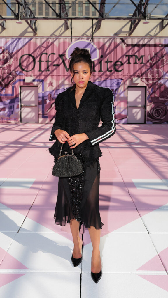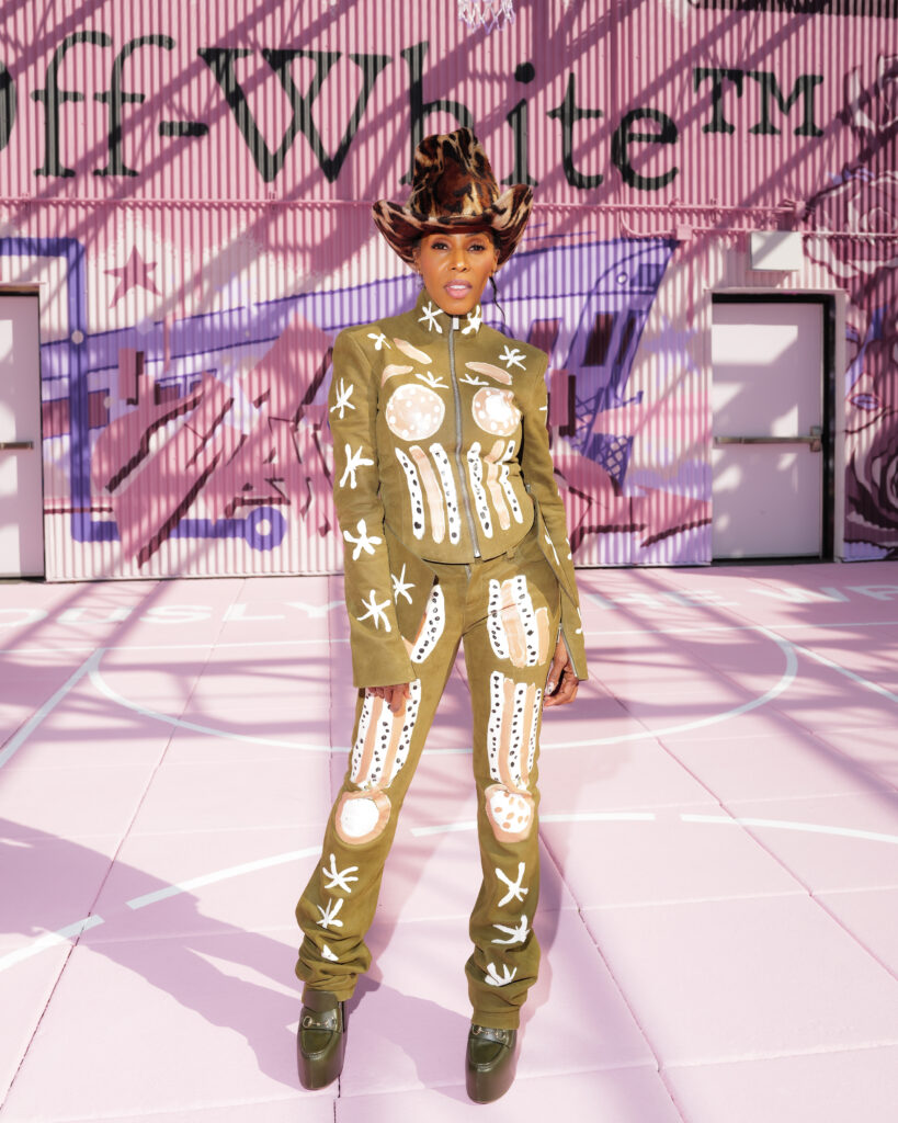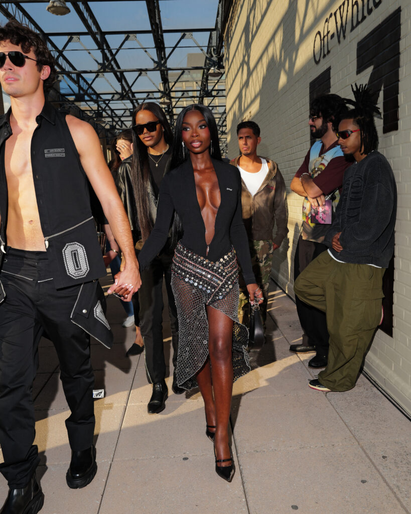 La scène américaine était également représentée par Antonia Gentry, jeune star de Ginny & Georgia, et l’incontournable Mary J. Blige, véritable légende de la soul et du hip-hop, dont l’élégance continue de traverser les décennies. Le mannequin Carmella Rose a incarné le glamour d’un public plus mode, tandis que la DJ et productrice Honey Dijon, déjà proche des cercles créatifs d’Abloh, rappelait l’importance des communautés queer et underground dans l’ADN d’Off-White™.