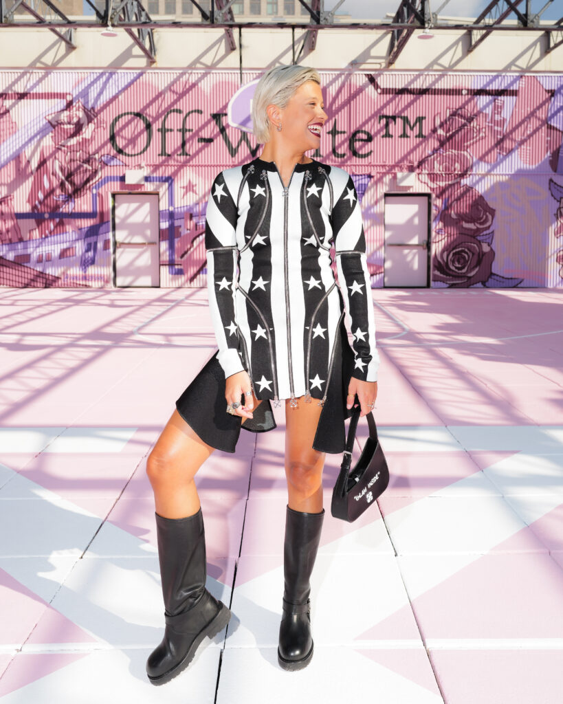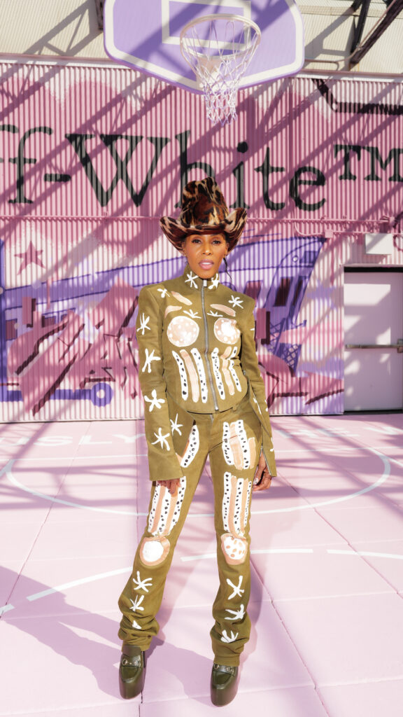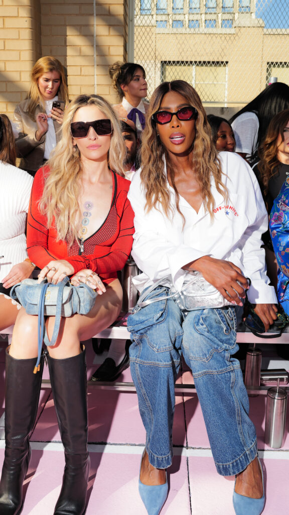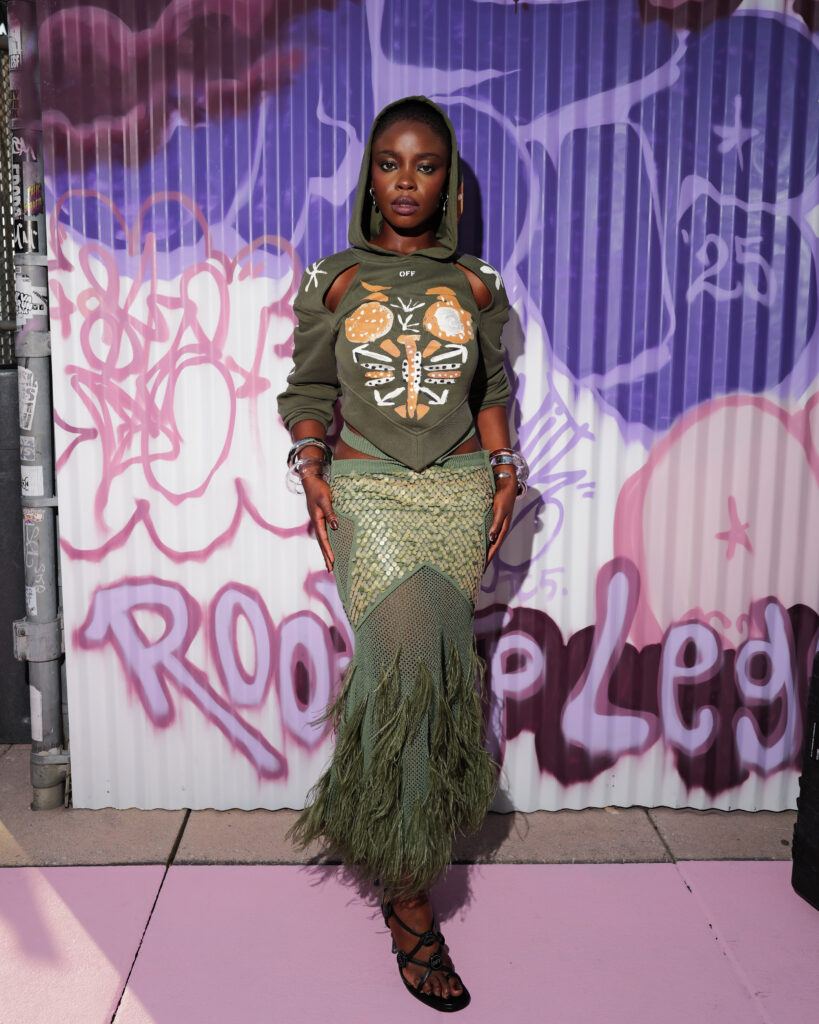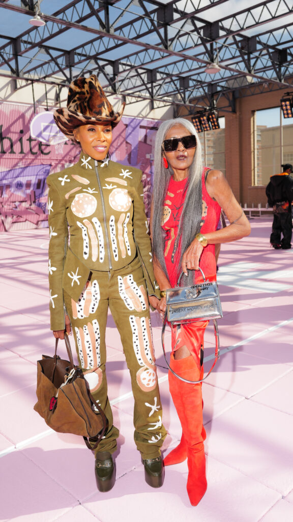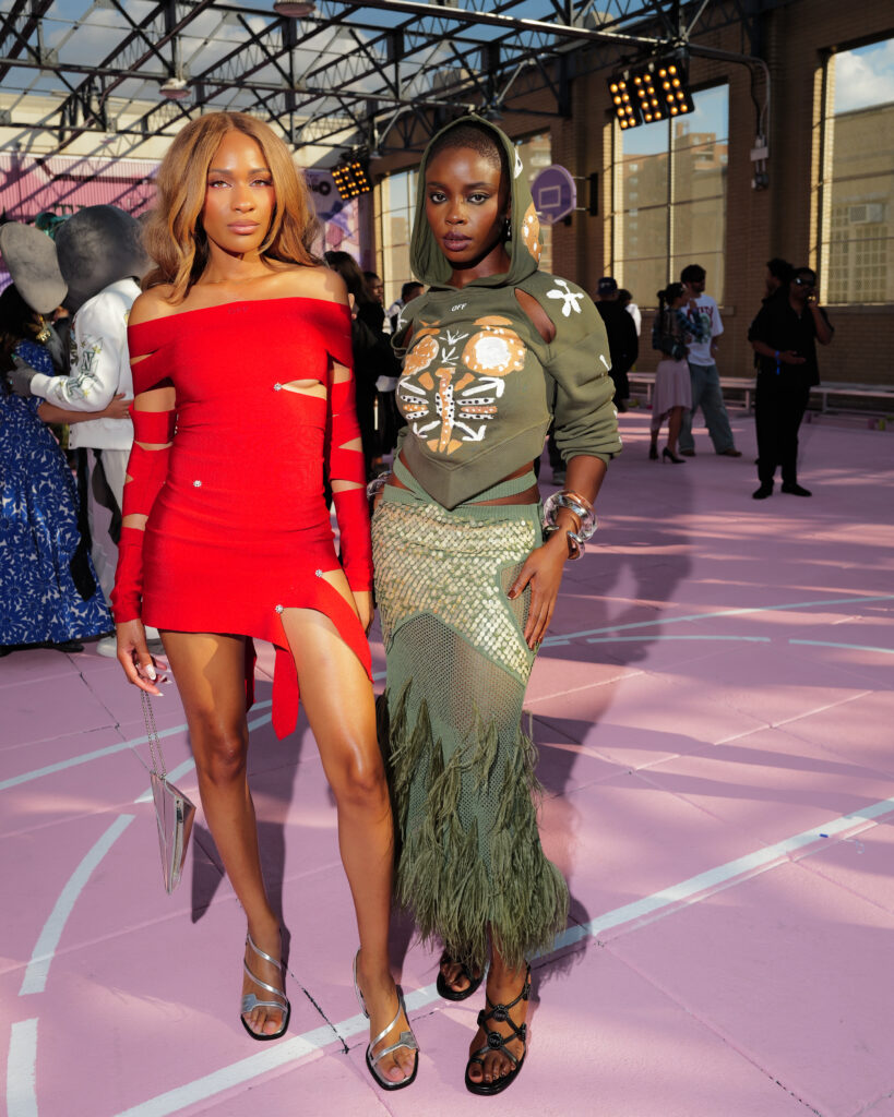 La scène américaine était également représentée par Antonia Gentry, jeune star de Ginny & Georgia, et l’incontournable Mary J. Blige, véritable légende de la soul et du hip-hop, dont l’élégance continue de traverser les décennies. Le mannequin Carmella Rose a incarné le glamour d’un public plus mode, tandis que la DJ et productrice Honey Dijon, déjà proche des cercles créatifs d’Abloh, rappelait l’importance des communautés queer et underground dans l’ADN d’Off-White™.