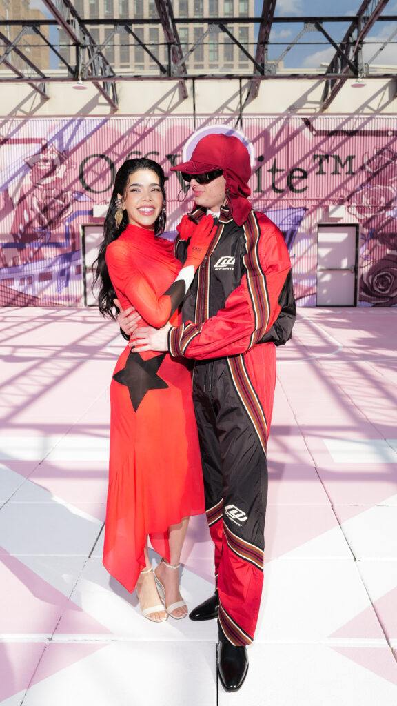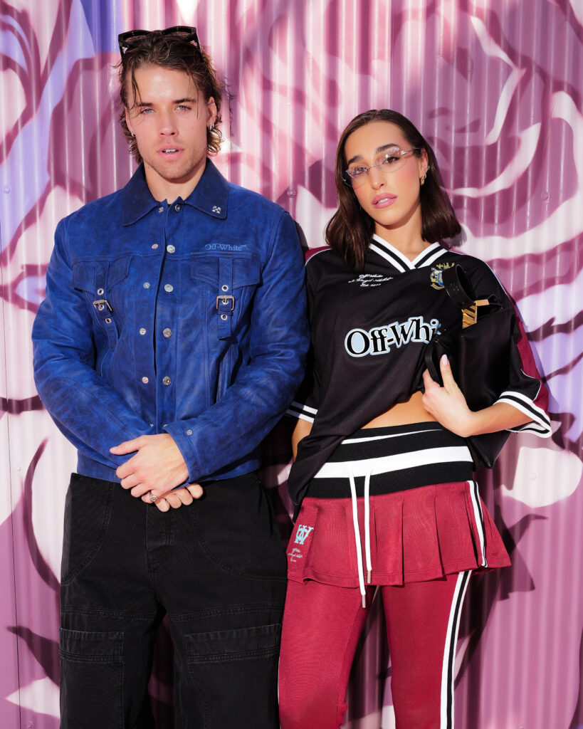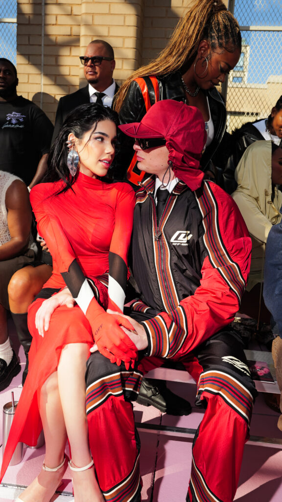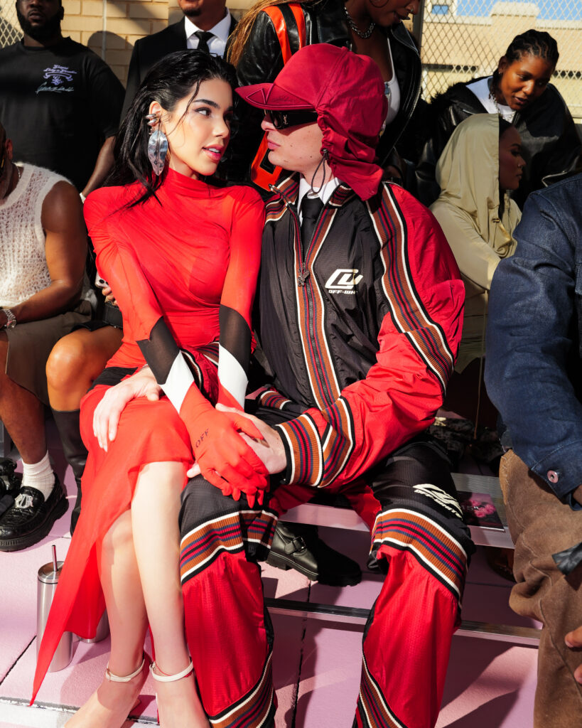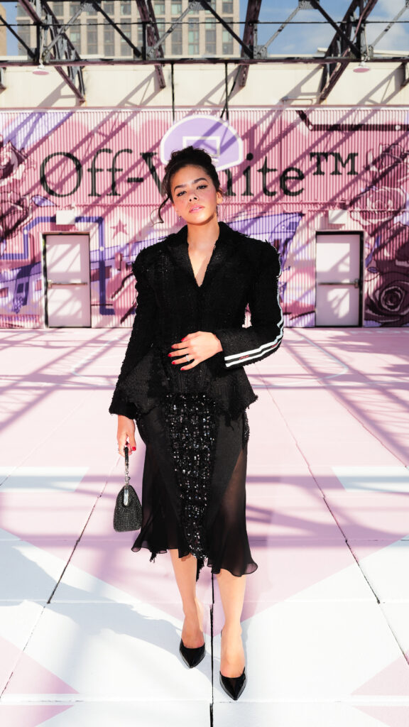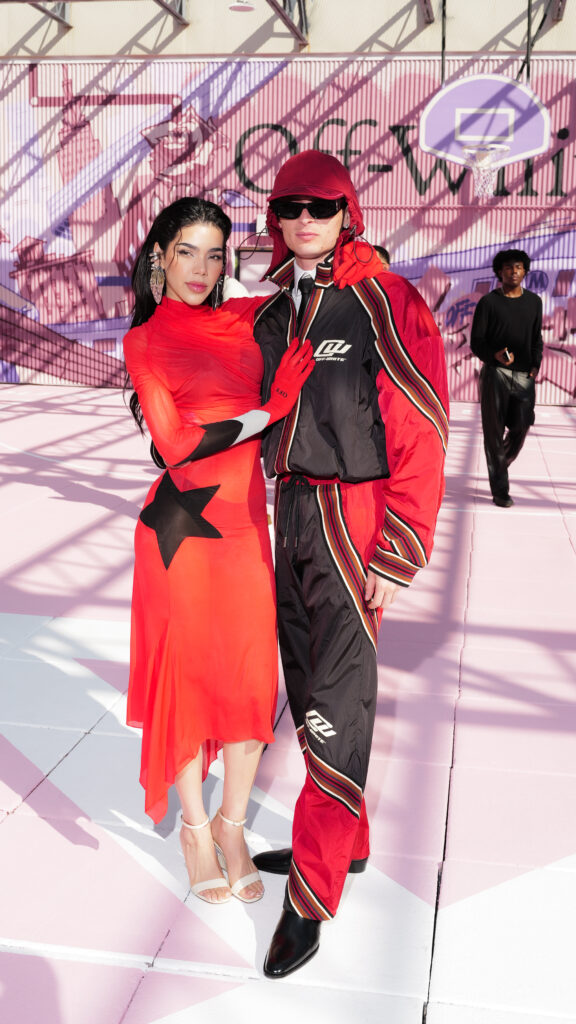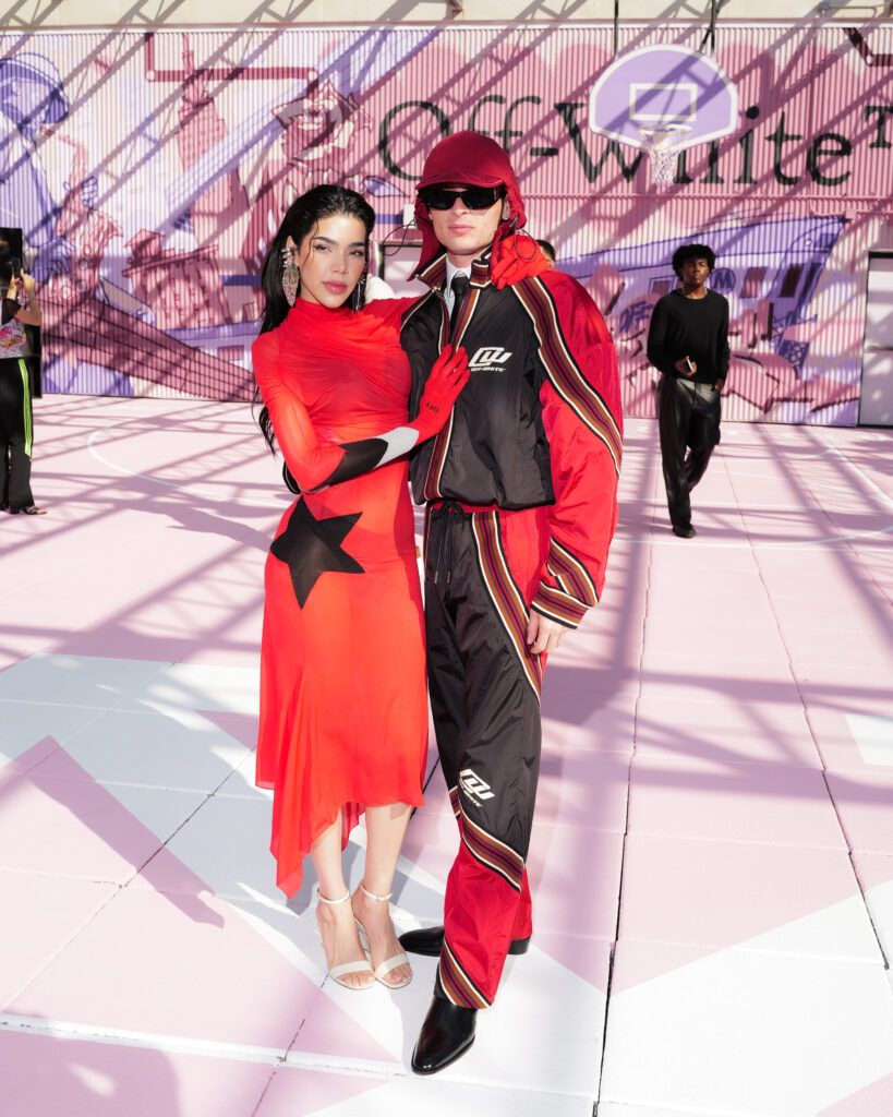 La chanteuse Ciara a ouvert le bal des invités de prestige, icône R&B et muse de la mode, dont la présence souligne la dimension transatlantique de la marque. L’actrice Joy Sunday, révélation de la série Wednesday, confirmait l’attrait d’Off-White™ auprès d’une nouvelle génération connectée, tandis que le duo explosif Peso Pluma & Kenia Os, figures majeures de la scène musicale latino, ajoutaient une énergie vibrante à ce casting VIP.