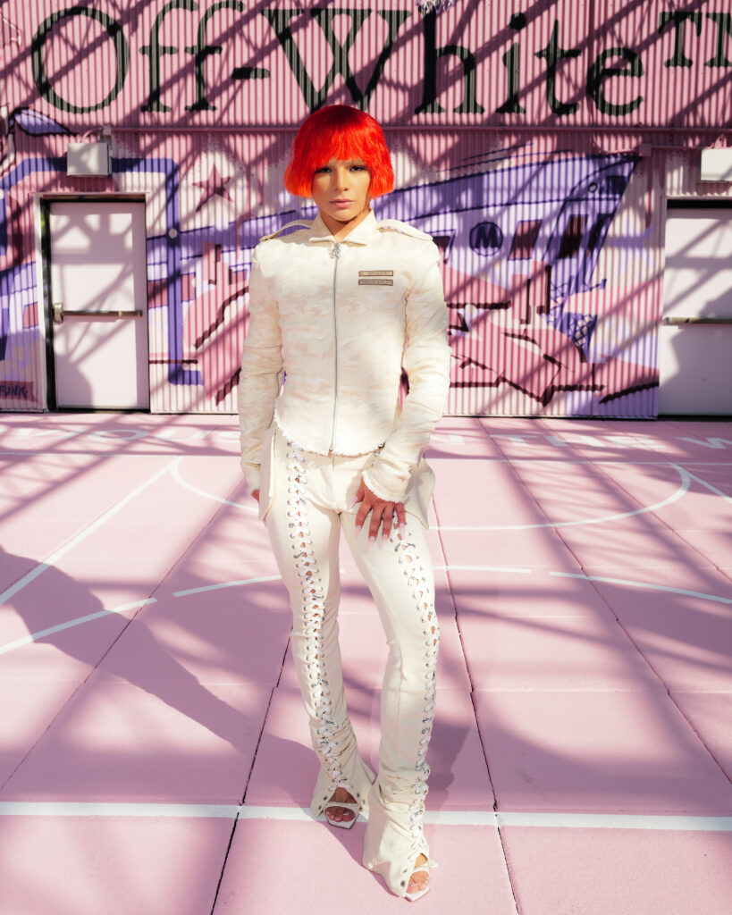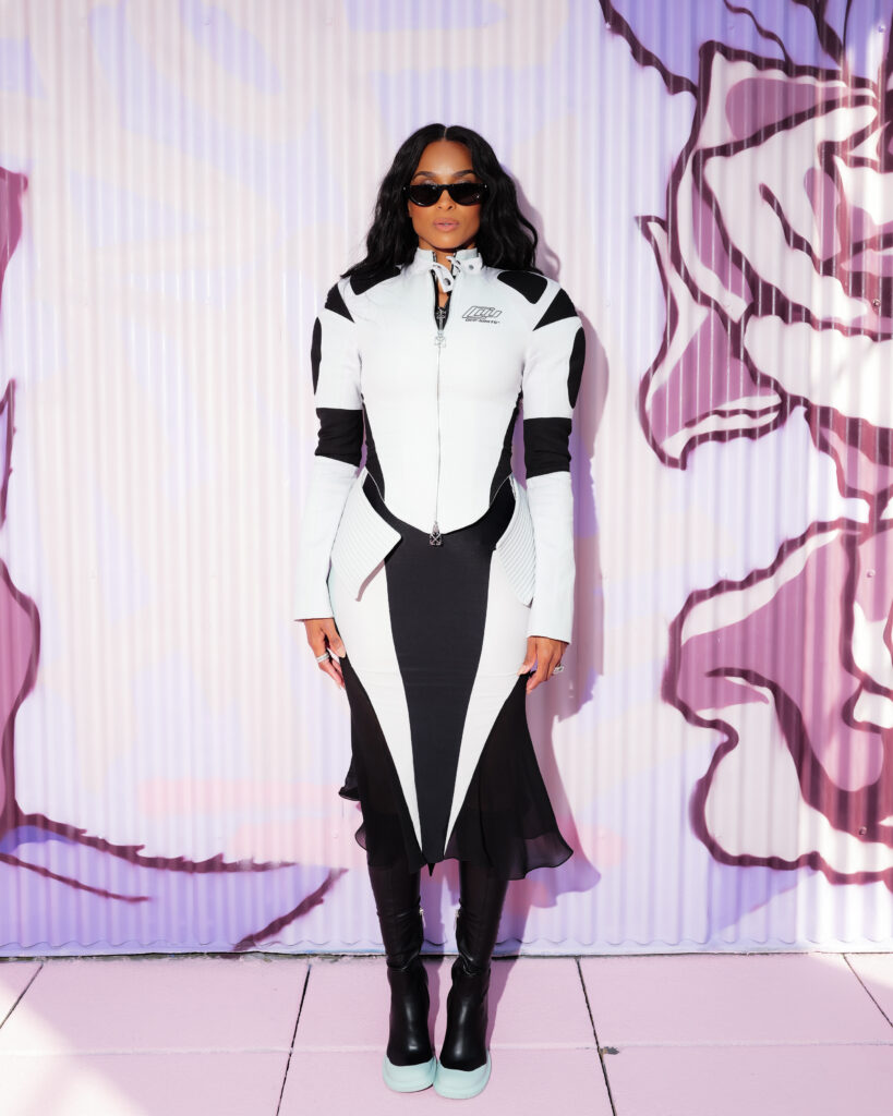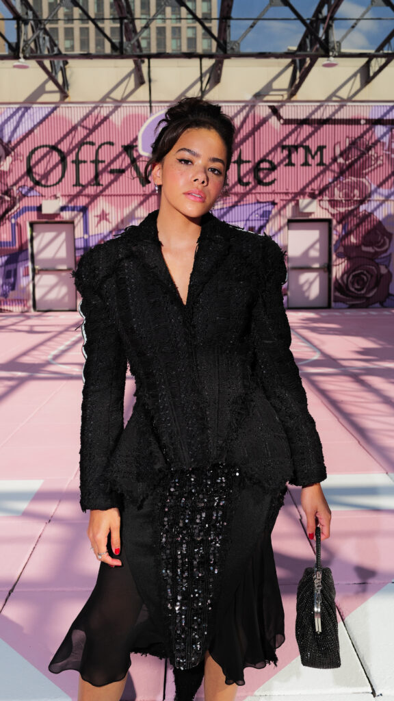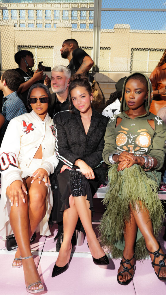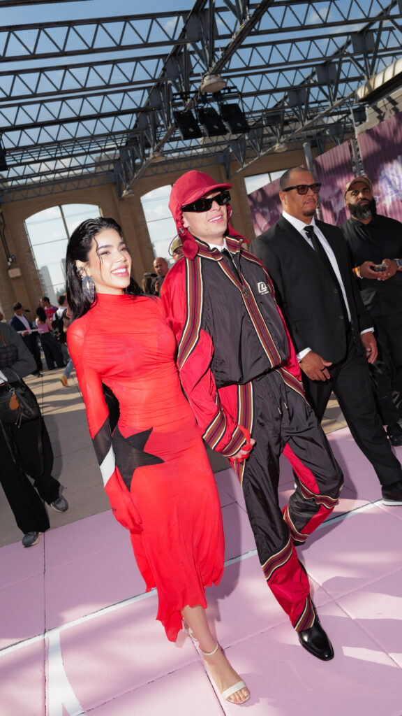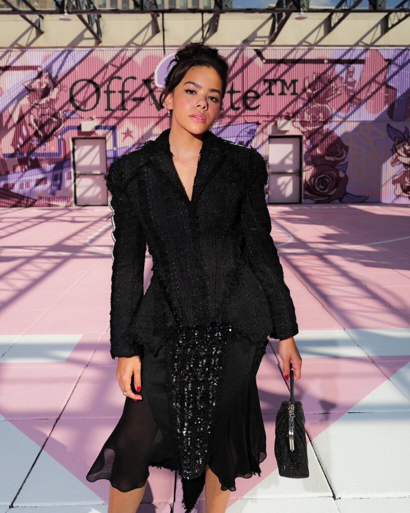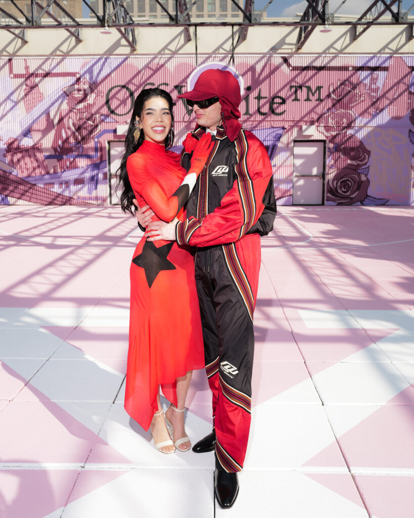 La chanteuse Ciara a ouvert le bal des invités de prestige, icône R&B et muse de la mode, dont la présence souligne la dimension transatlantique de la marque. L’actrice Joy Sunday, révélation de la série Wednesday, confirmait l’attrait d’Off-White™ auprès d’une nouvelle génération connectée, tandis que le duo explosif Peso Pluma & Kenia Os, figures majeures de la scène musicale latino, ajoutaient une énergie vibrante à ce casting VIP.