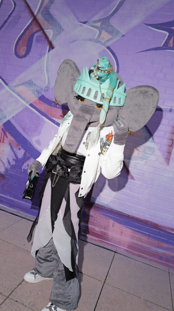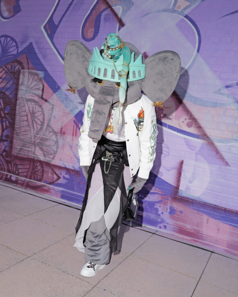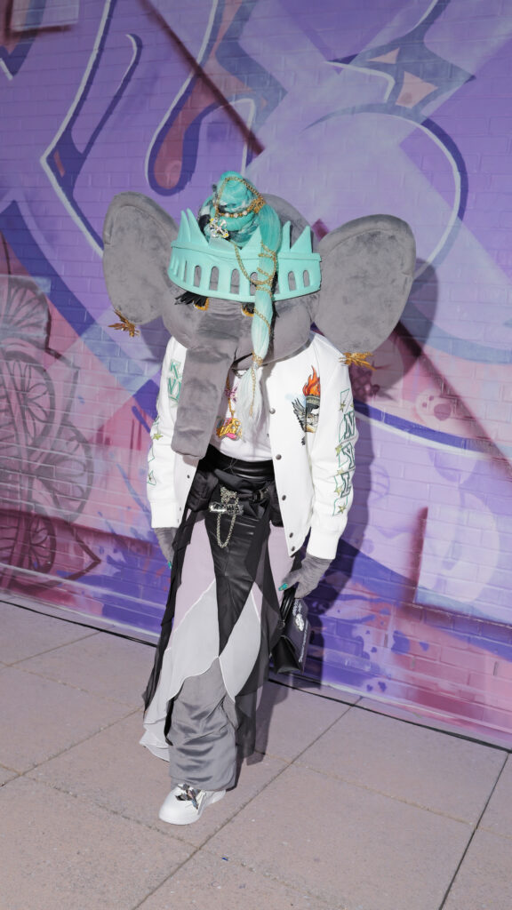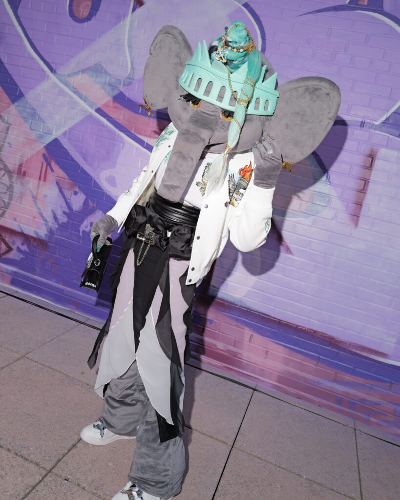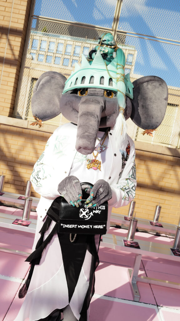 La note surréaliste et artistique est venue d’Ellie the Elephant, performeuse conceptuelle, et de Honey Balenciaga, figure montante de la ballroom scene, qui a apporté une énergie irrévérencieuse et inclusive.