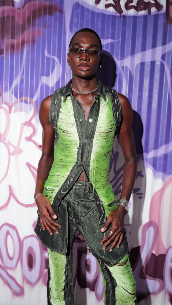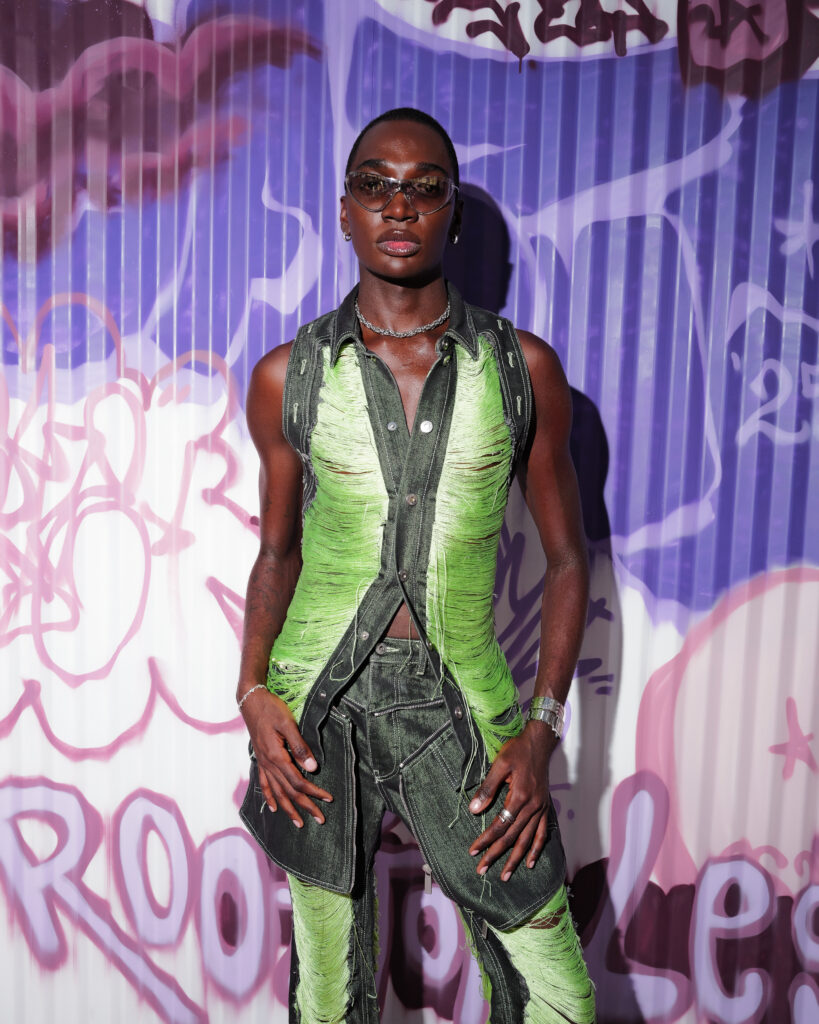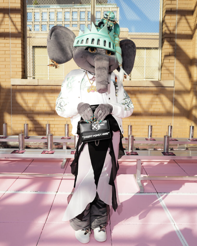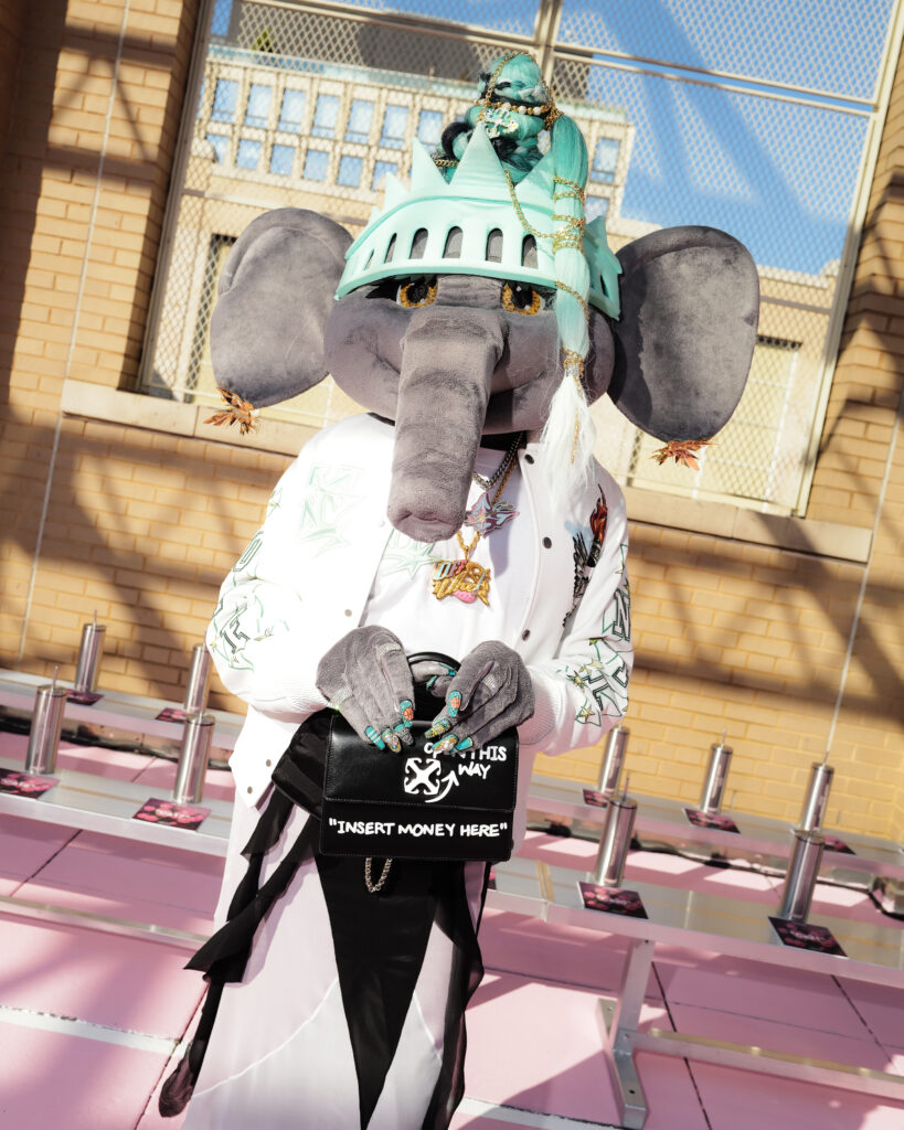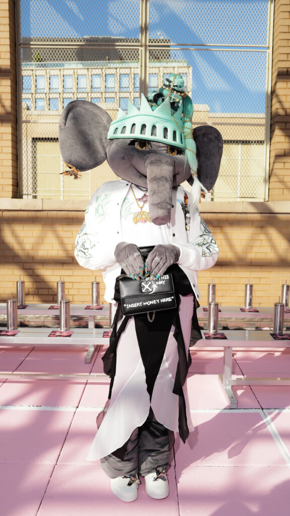 La note surréaliste et artistique est venue d’Ellie the Elephant, performeuse conceptuelle, et de Honey Balenciaga, figure montante de la ballroom scene, qui a apporté une énergie irrévérencieuse et inclusive.